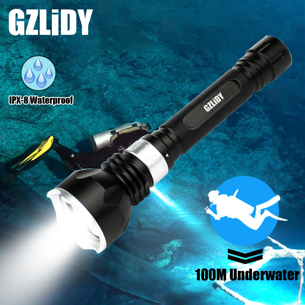 GZLIDY 1800 люмен фонарик для дайвинга/перезаряжаемый двойной фонарик для дайвинга-необходимый фонарик для дайвинга