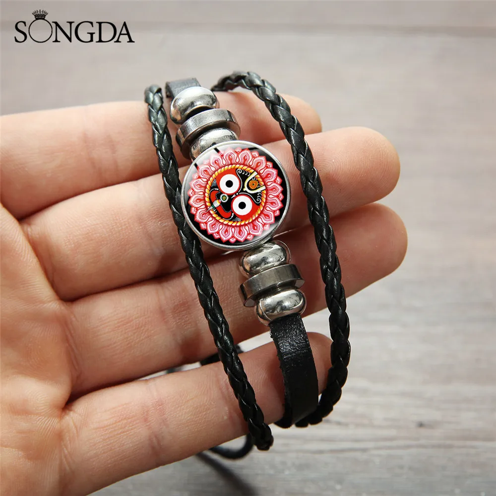 Индийский религиозный Властелин Jagannath, кожаные браслеты, многослойные металлические бусины, веревочный браслет для женщин и мужчин, подарки, ювелирные изделия