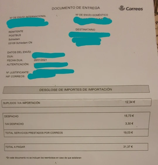 Я должен был заплатить 25 евро, что это таможенная доставка ha Испания. Об этом не было сообщено. Доставка кошек указана 0 евро