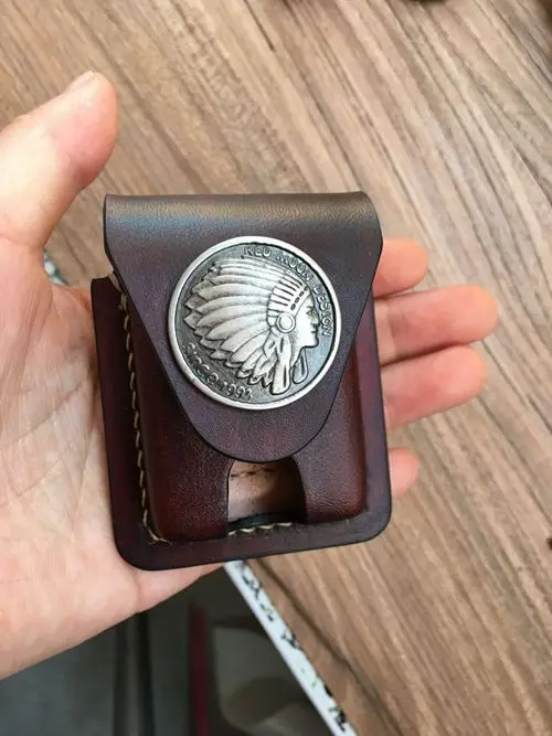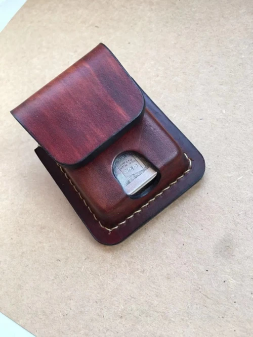 Всё отлично. Выглядит чехол лучше, чем на фото. Кожа натуральная и толстая. Зажигалка сидит достаточно свободно. Петля под ремень узковата. 43 мм влезает с трудом (потом сядет, но ремень пошире одеть уже не выйдет). Упаковано было как надо.