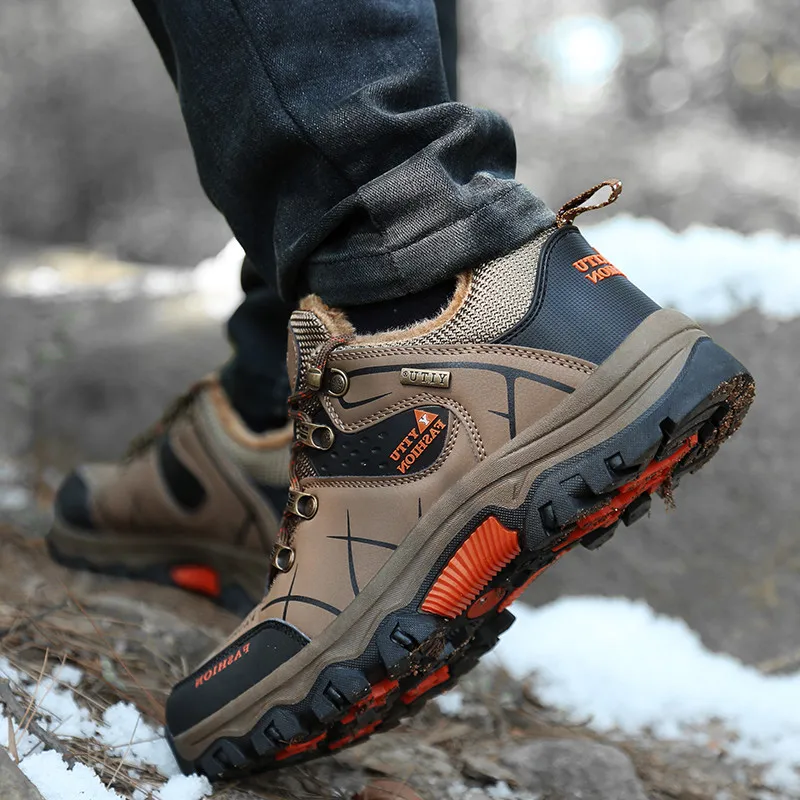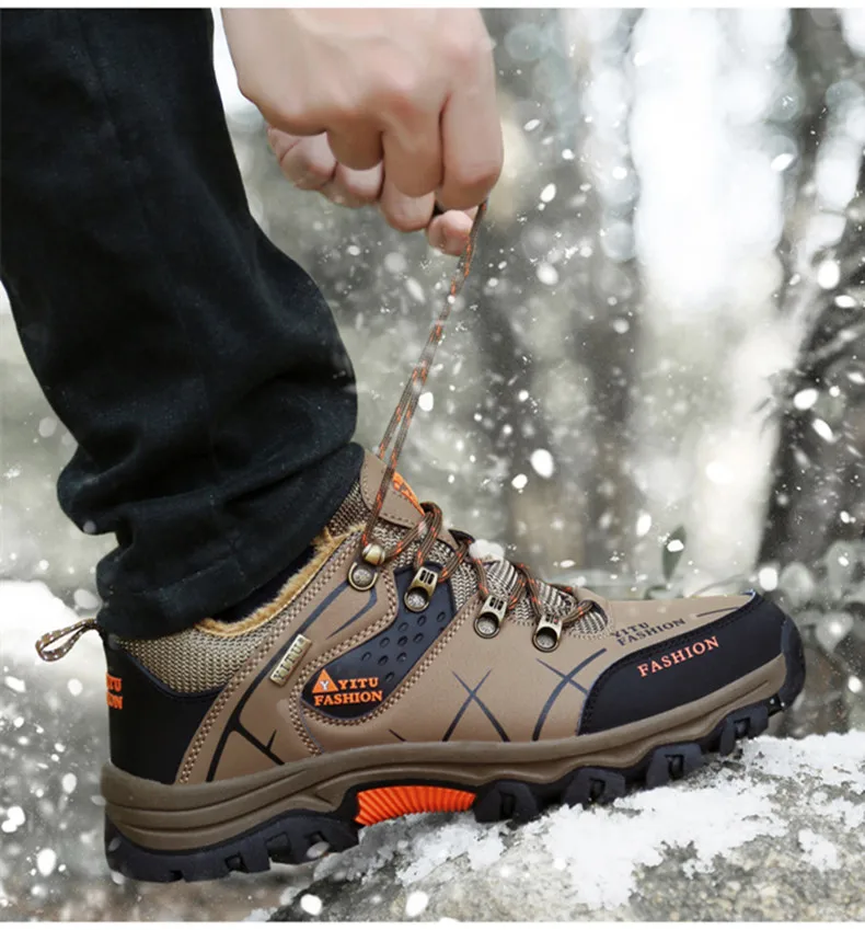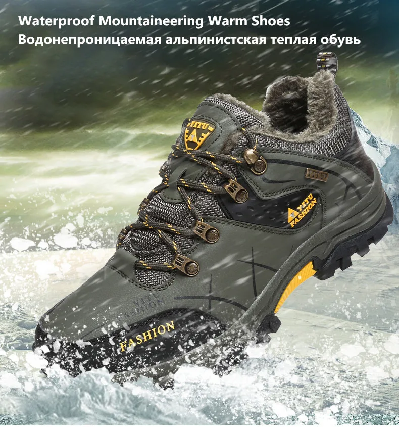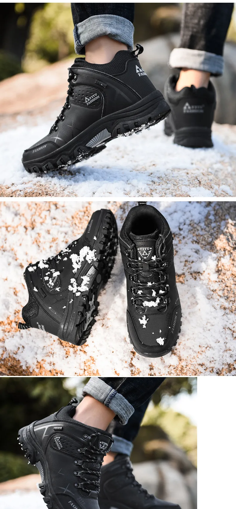 Модные зимние кожаные мужские теплые ботинки, мужские ботинки, уличные Нескользящие кроссовки, мужские походные ботинки, водонепроницаемая Рабочая обувь