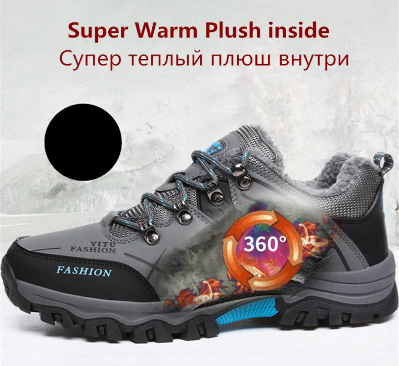 Зимняя плюшевая теплая походная обувь, мужские кроссовки, уличная В...