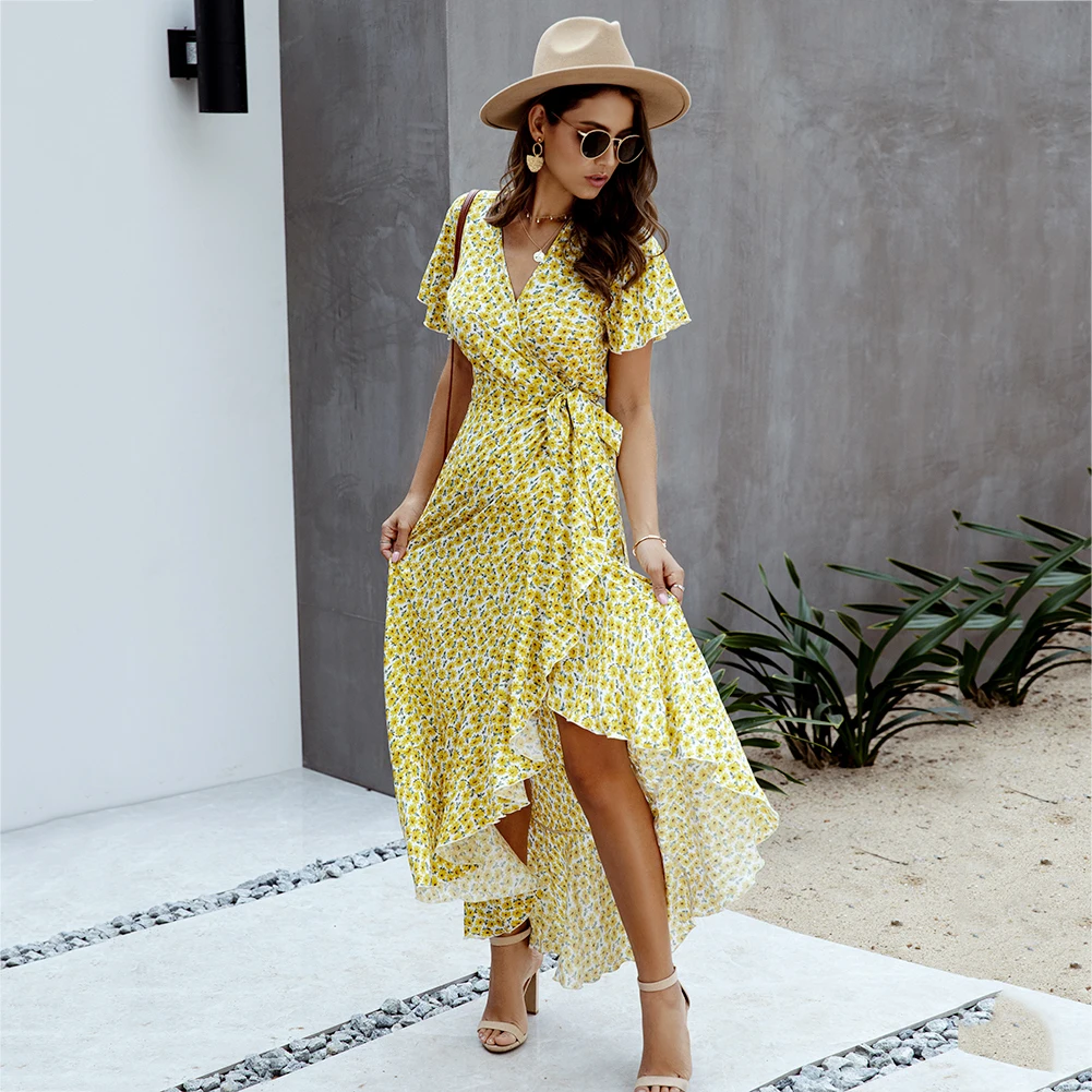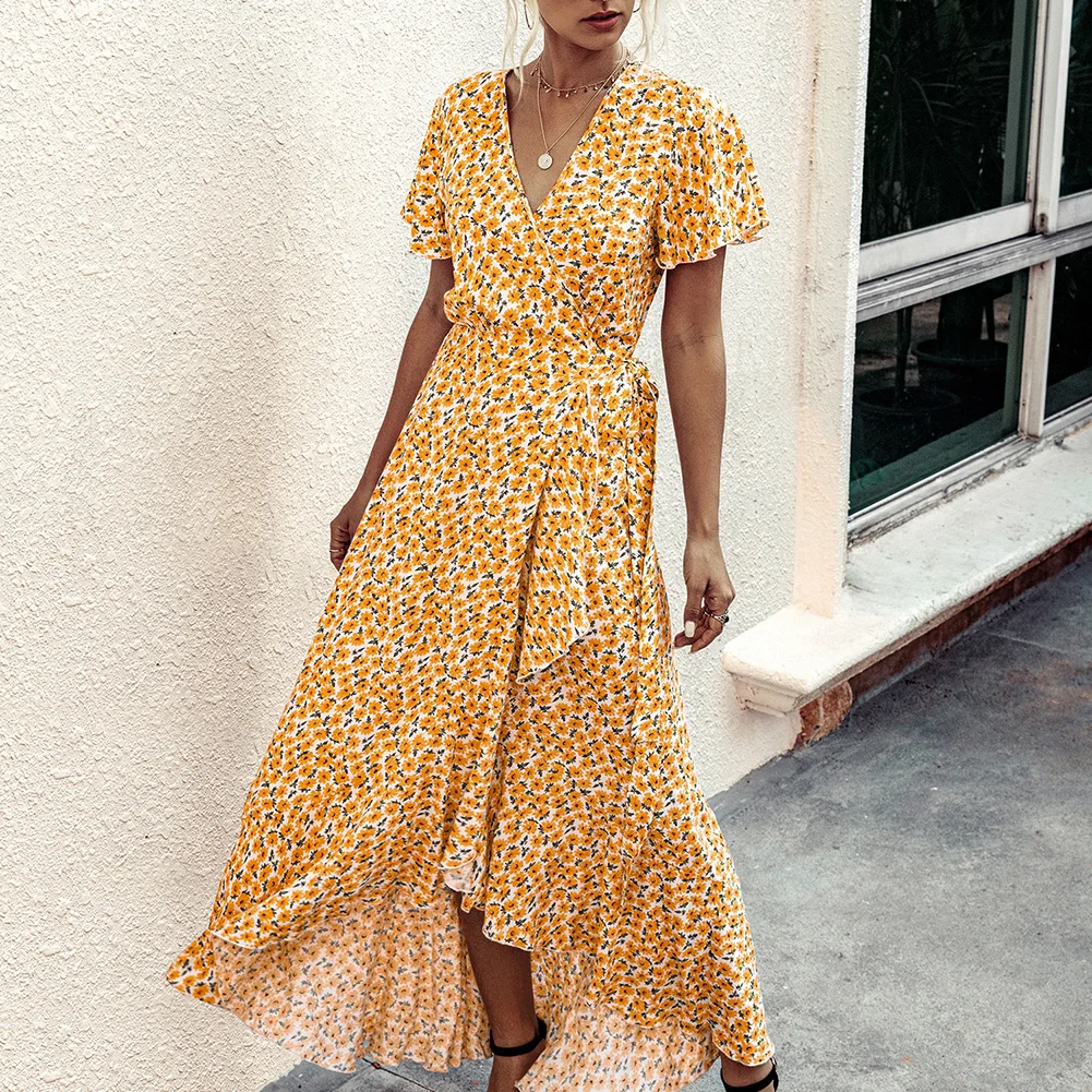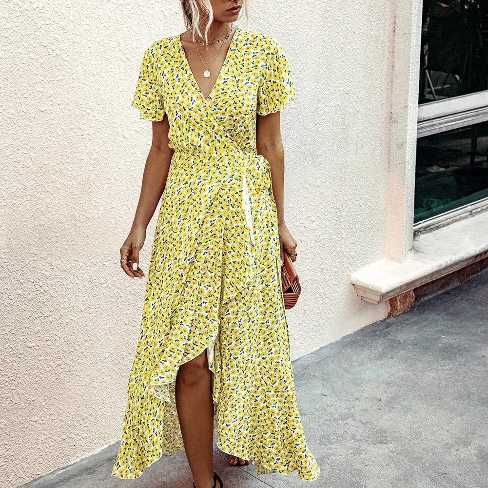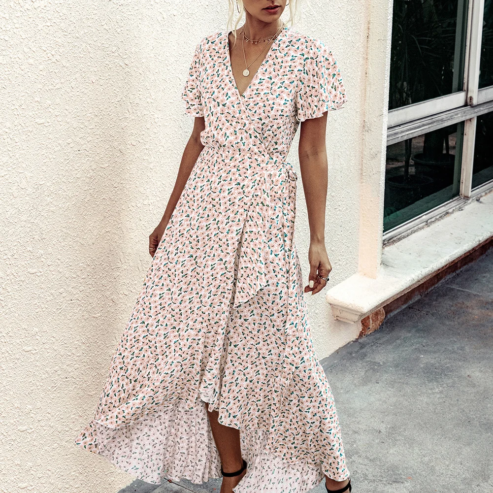 Он представлен в горошек/с цветочным принтом и асимметричным подолом, что делает вас более модным и сексуальным.