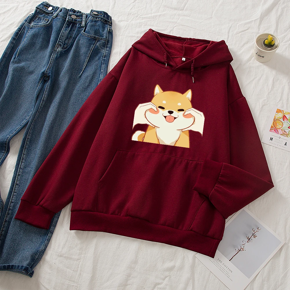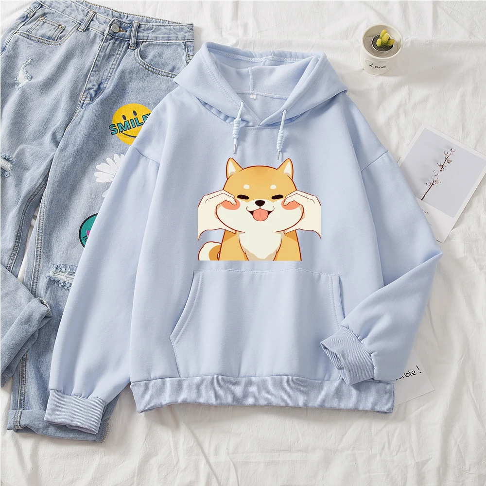 Толстовки с капюшоном с милым принтом собаки из мультфильма, Осенние Забавные милые повседневные хлопковые свободные уличные милые корги, толстовки для женщин