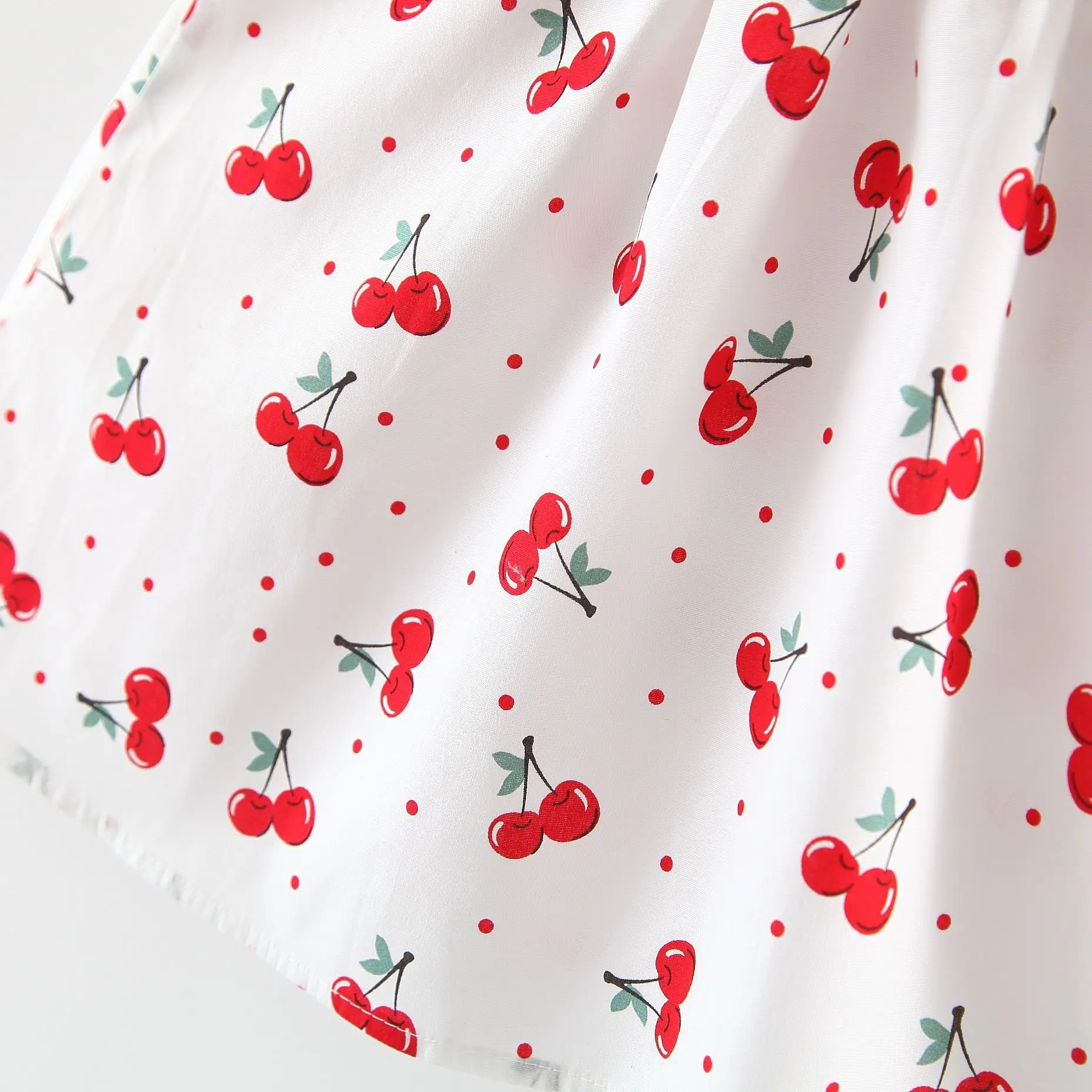 2 шт., летняя одежда для новорожденных, платья для младенцев, милая вишневая бабочка, хлопковое пляжное платье без рукавов для девочек + Солнцезащитная шляпа, комплект для детей, BC1866