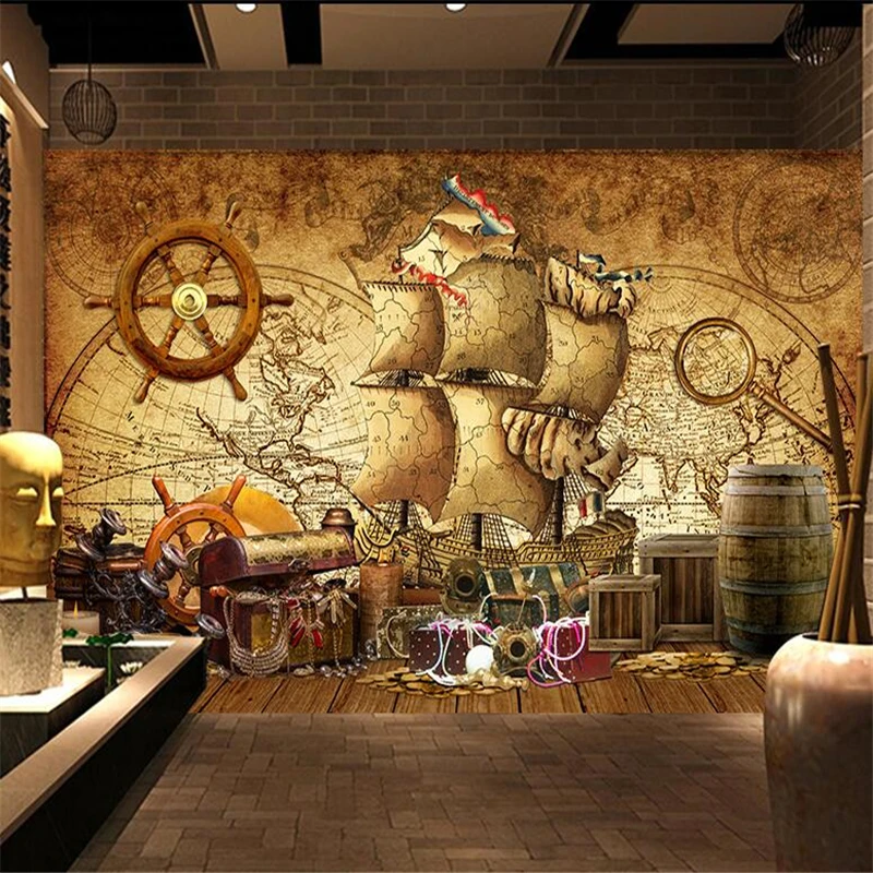 Настенные обои на заказ, ностальгические винтажные морские карты, пиратские Настенные обои, Настенные обои