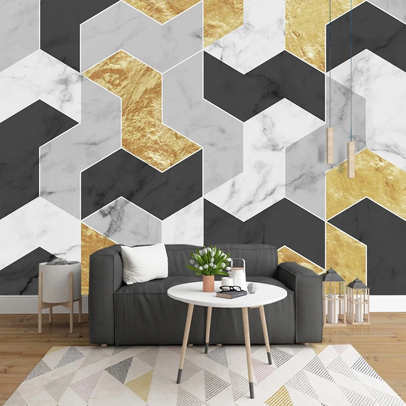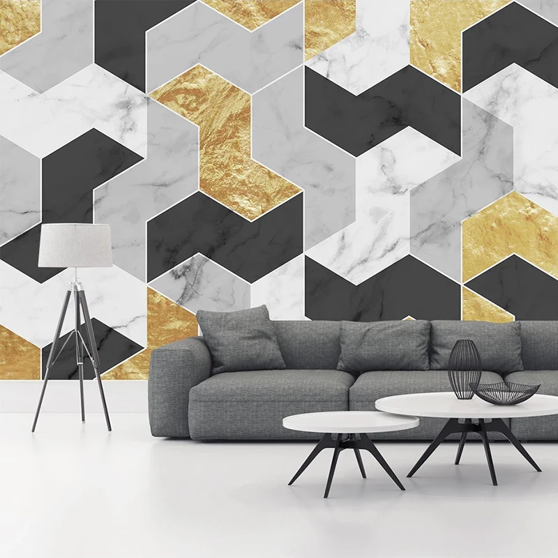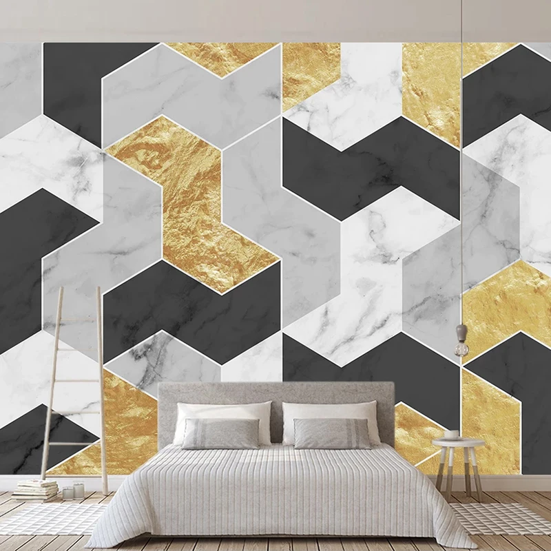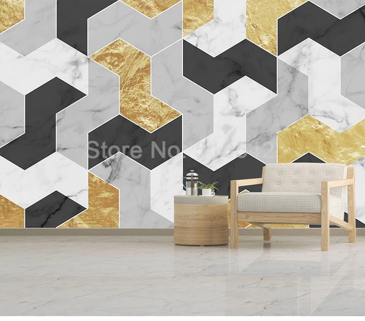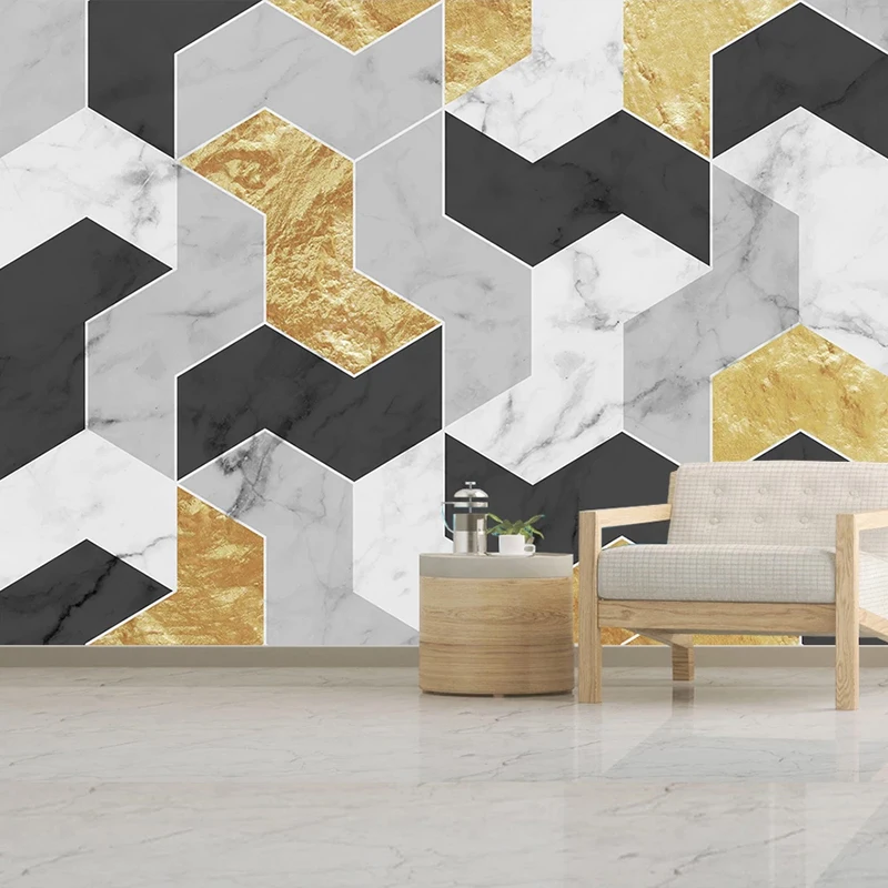 Пользовательские обои 3D золотые линии геометрический мраморный узо...