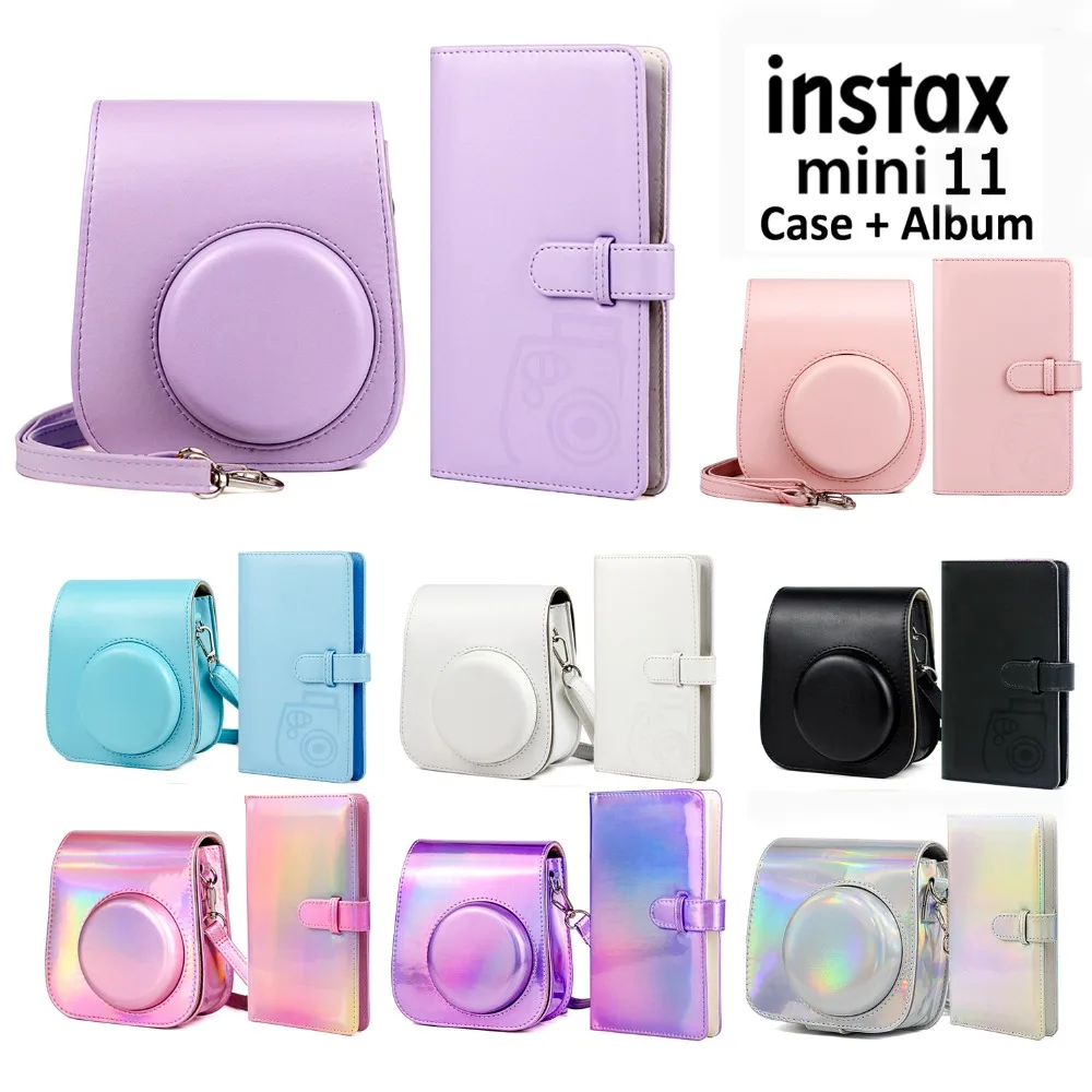 Чехол из искусственной кожи для камеры Fujifilm Instax Mini 11, сумка через плечо, сумка для переноски Instax Mini + 96 альбом с карманами