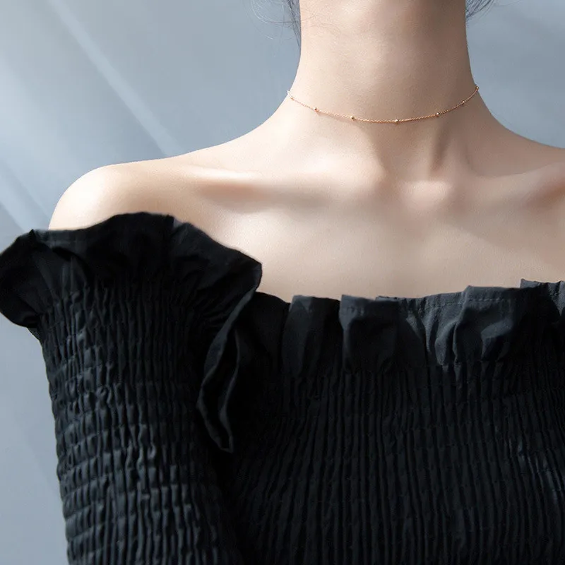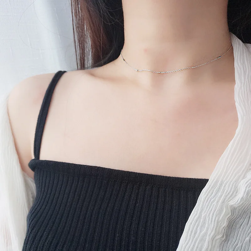 Ожерелье из серебра 925 пробы в Корейском стиле, минималистичное геометрическое ожерелье с маленьким сердечком, цепочка-чокер с подвеской в форме хрустального шара, диск для трубки