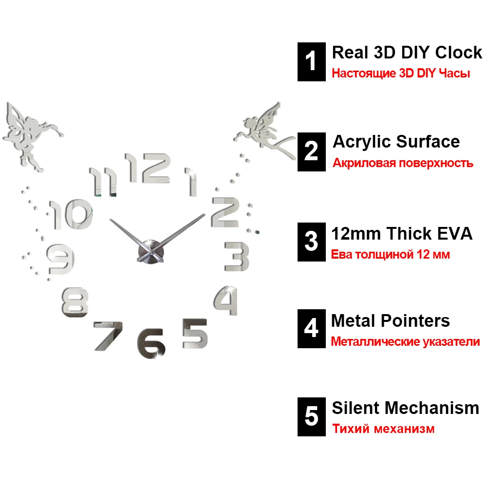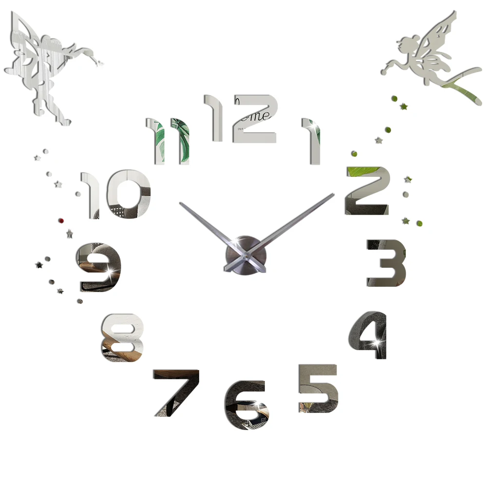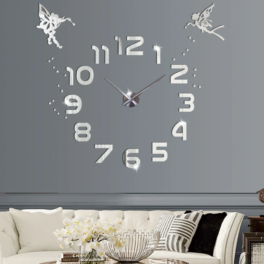 3D DIY большие настенные часы Ангел акриловая Зеркальная Наклейка н...