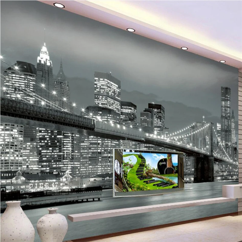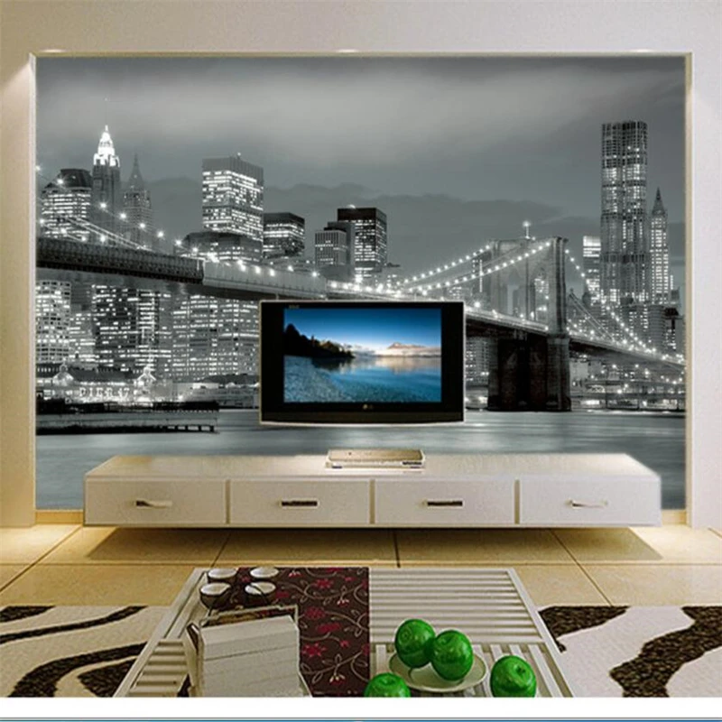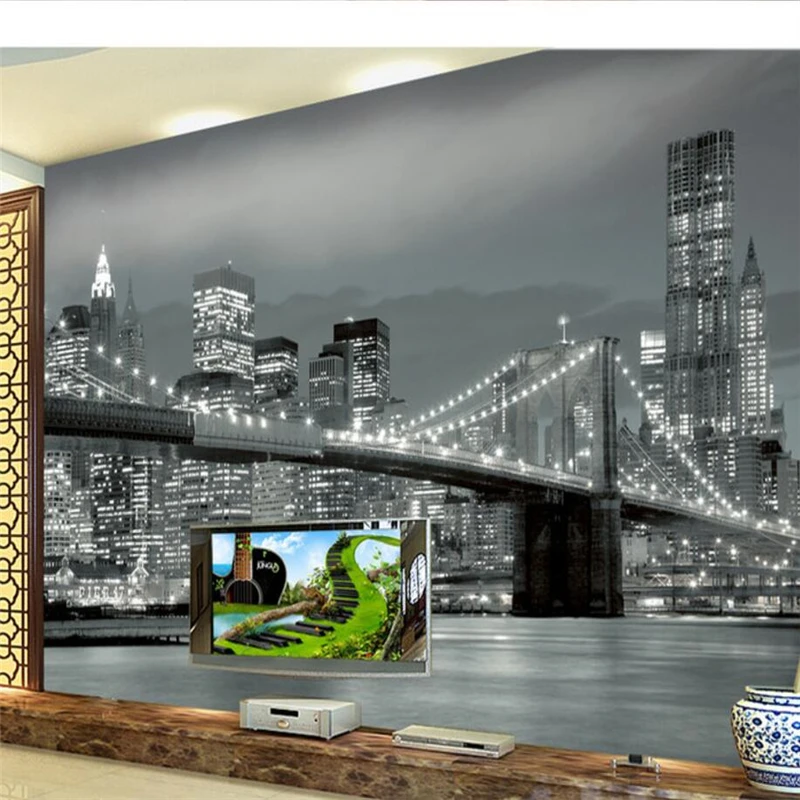 Настенные бумажные обои для стен 3 d, Настенные обои на заказ, Нью-Йорк мост, архитектура, ночной просмотр, ТВ, настенные фрески behang