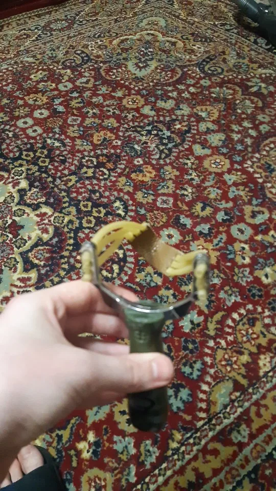 Рогатку делал сам, из алюминия, получилась довольно мощная, с 5 шагов пробивает, а не разбивает стеклянную банку. Качество достойная, игрался один день, ни чего не оторвалось и лопнуло.