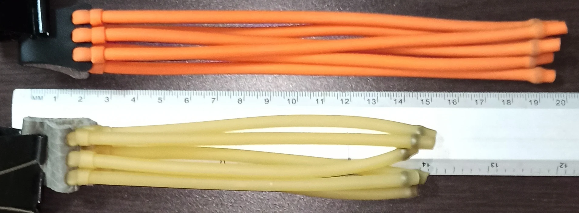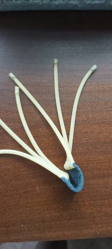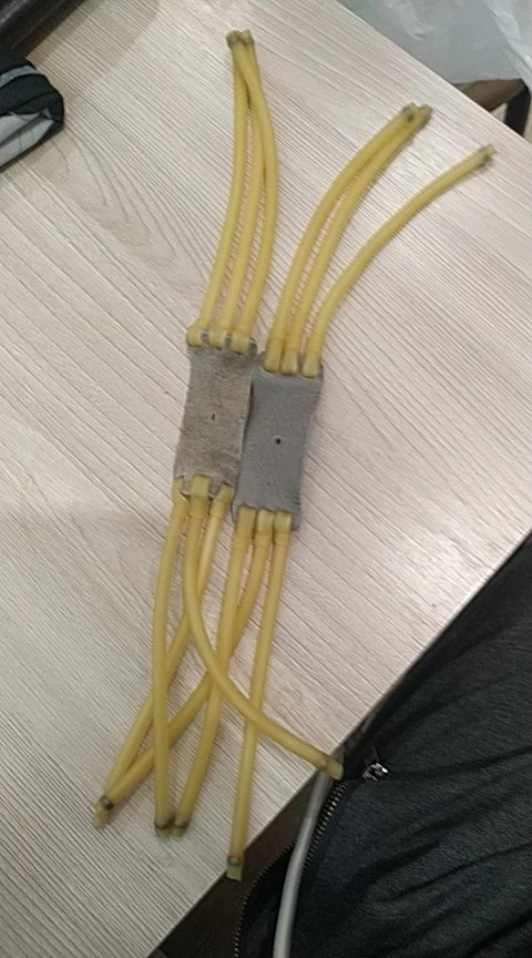 Отличная резинка. Пришла очень быстро, недели за 3. Натяг прям тугой, средний шарик метров на 100 запулит. По приколу прихватил между пальцами, оттянул и отпустил. О мощности резинки можете судить по опухшему пальцу. Вообщем рекомендую, как сделаю под неё рогатку дополню отзыв. Своих денег однозначно стоит. Пять опухших пальцев из пяти