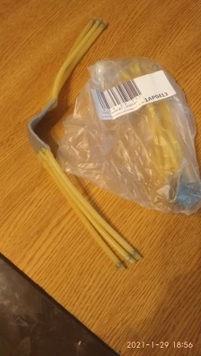 Actually, this is a very small set! On the picture this is not so clear... but in reality, when you put this thing on your hand - it is so tiny! Those miniature thin little tubes would probably make you laugh. If you want to make a slingshot out of this, it will be good only as a toy. Or, you can hunt sparrows on your own balcony, if you will. The length of 15 cm includes the pouch! Other than that, it is exactly what it looks on the picture. Stretches about 1:3, quality is acceptable. Traveled 46 days, tracking was possible.