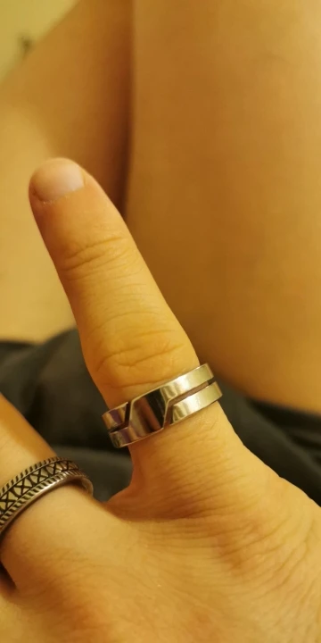 Очень универсальное кольцо, которое можно носить двумя способами. Не теряет цвет. На мой взгляд, он немного слишком блестящий.