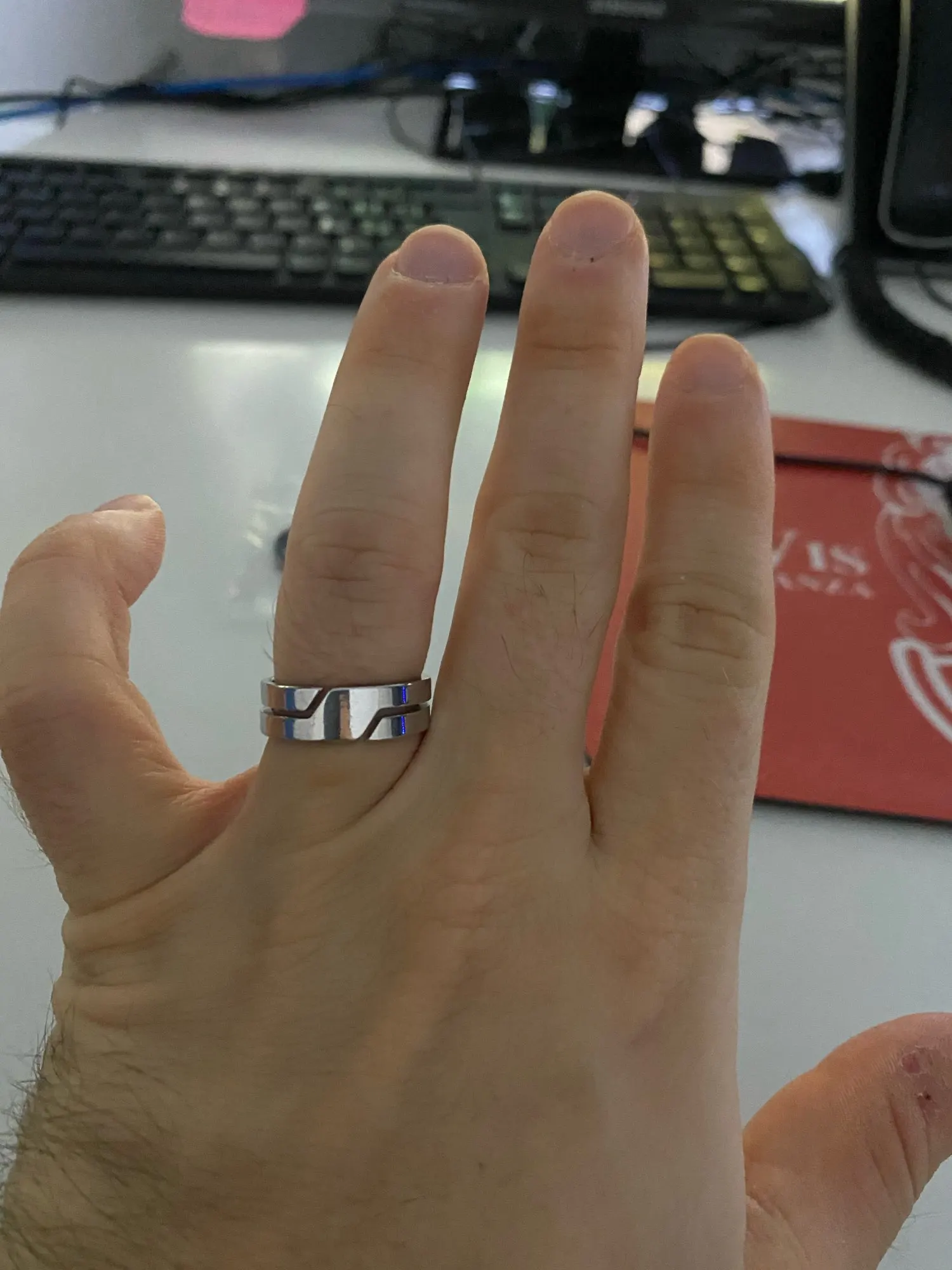 Товар выглядит хорошо, однако, я заказал размер 9 и получил этот товар вместе с другими кольцами из других магазинов, которые также имеют размер 9, и этот товар является единственным, который слишком мал. Я рекомендую покупать на один размер больше того, что вы хотите.