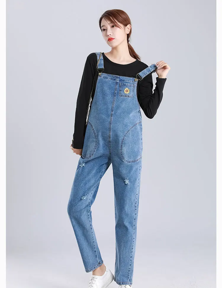Свободные брюки для беременных эластичный комбинезон для беременных Брюки 2022 весна осень Регулируемый джинсовый комбинезон для беременных женщин