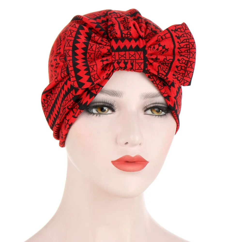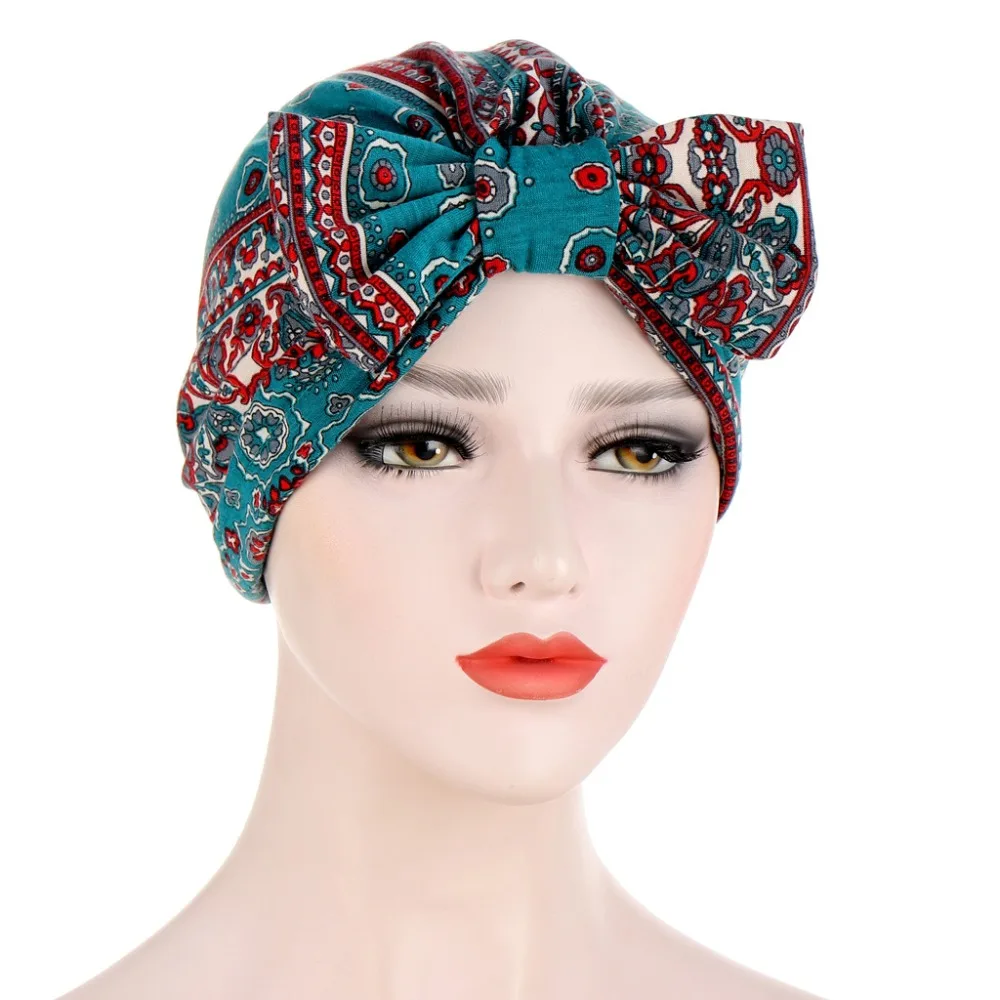 Принт в мусульманском стиле шапка женская с большим бантом Эластичный хиджаб шапка-тюрбан шарф головной убор шапка повязка на голову шапочка при химиотерапии бантики, аксессуары для волос