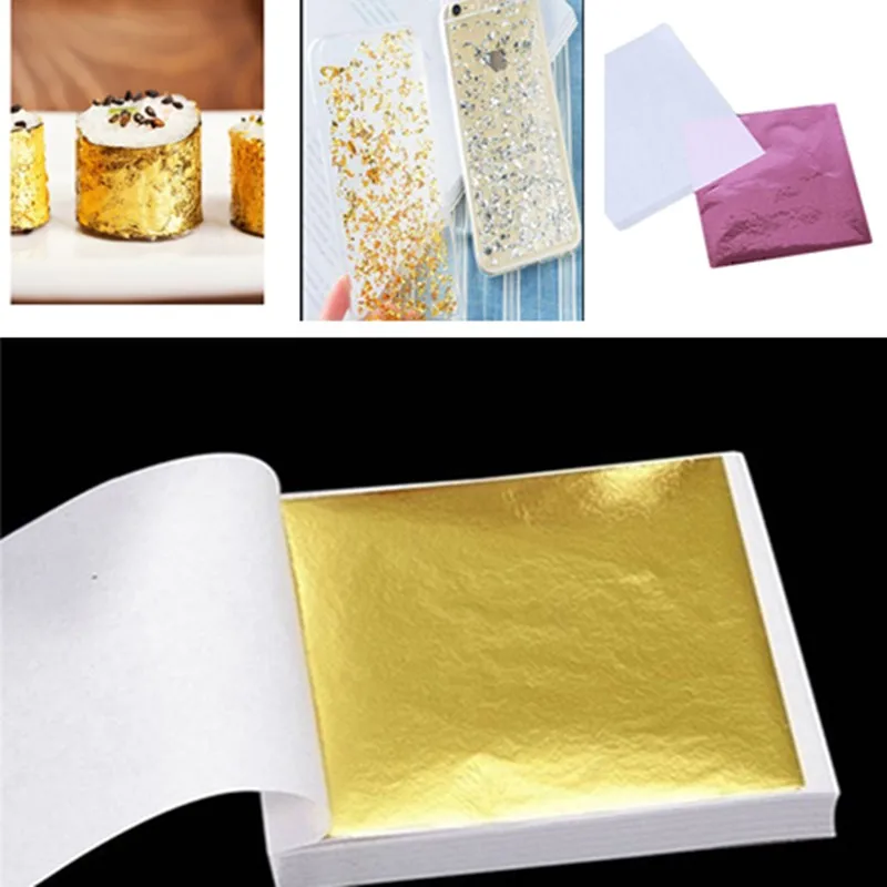 8*8,5 см, 100 шт., листы, чистые 24K, искусственное позолота для украшения еды, мебели, стены, ремесла, украшение сделай сам для скрапбукинга