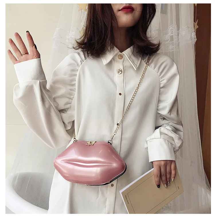 Сумки из ПВХ в форме губ, однотонная сумка на молнии через плечо, с...