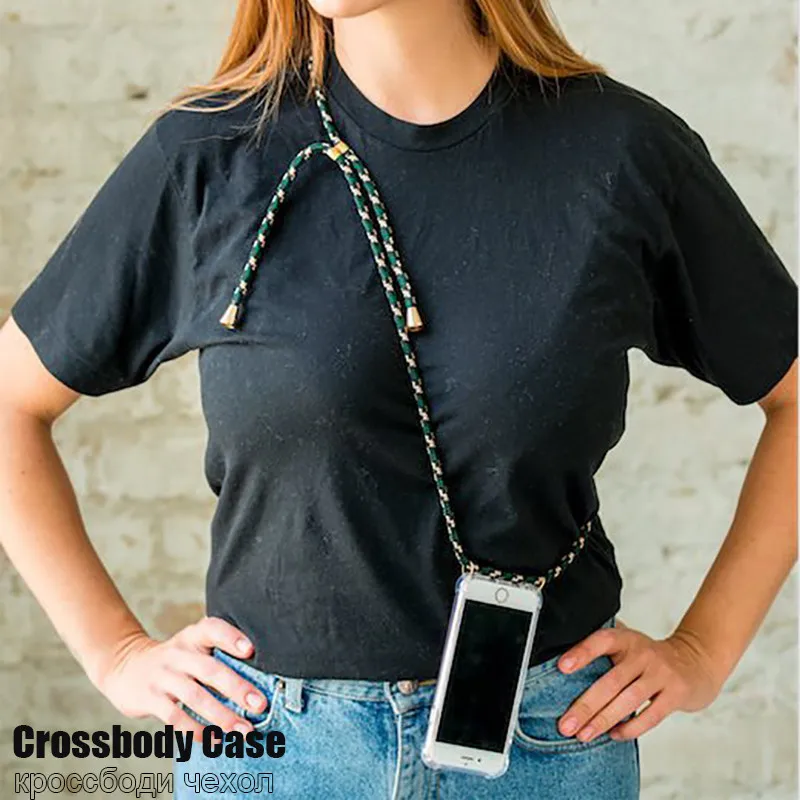 Прозрачный мягкий чехол из ТПУ для телефона, шнурок через плечо, ре...