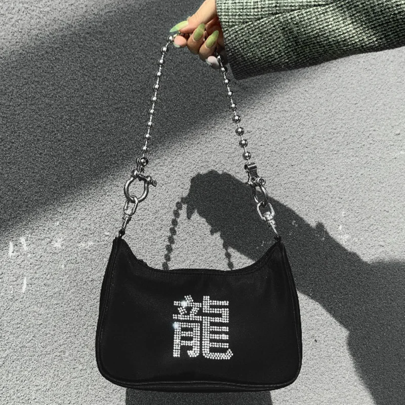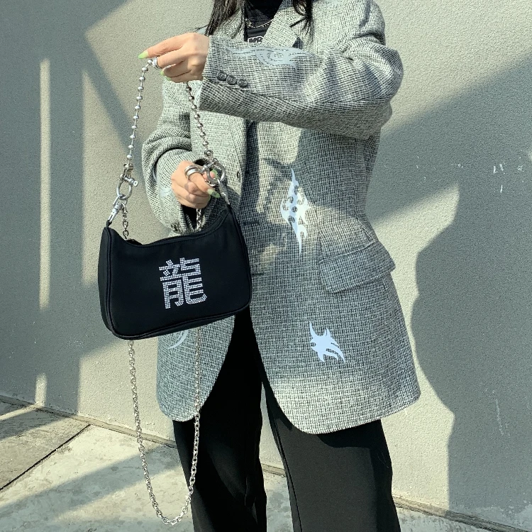 Y демо Сумка-альтернатива в стиле гранж, Женская двухсторонняя сумка с Бусиной в виде дракона, с цепочкой, 2020