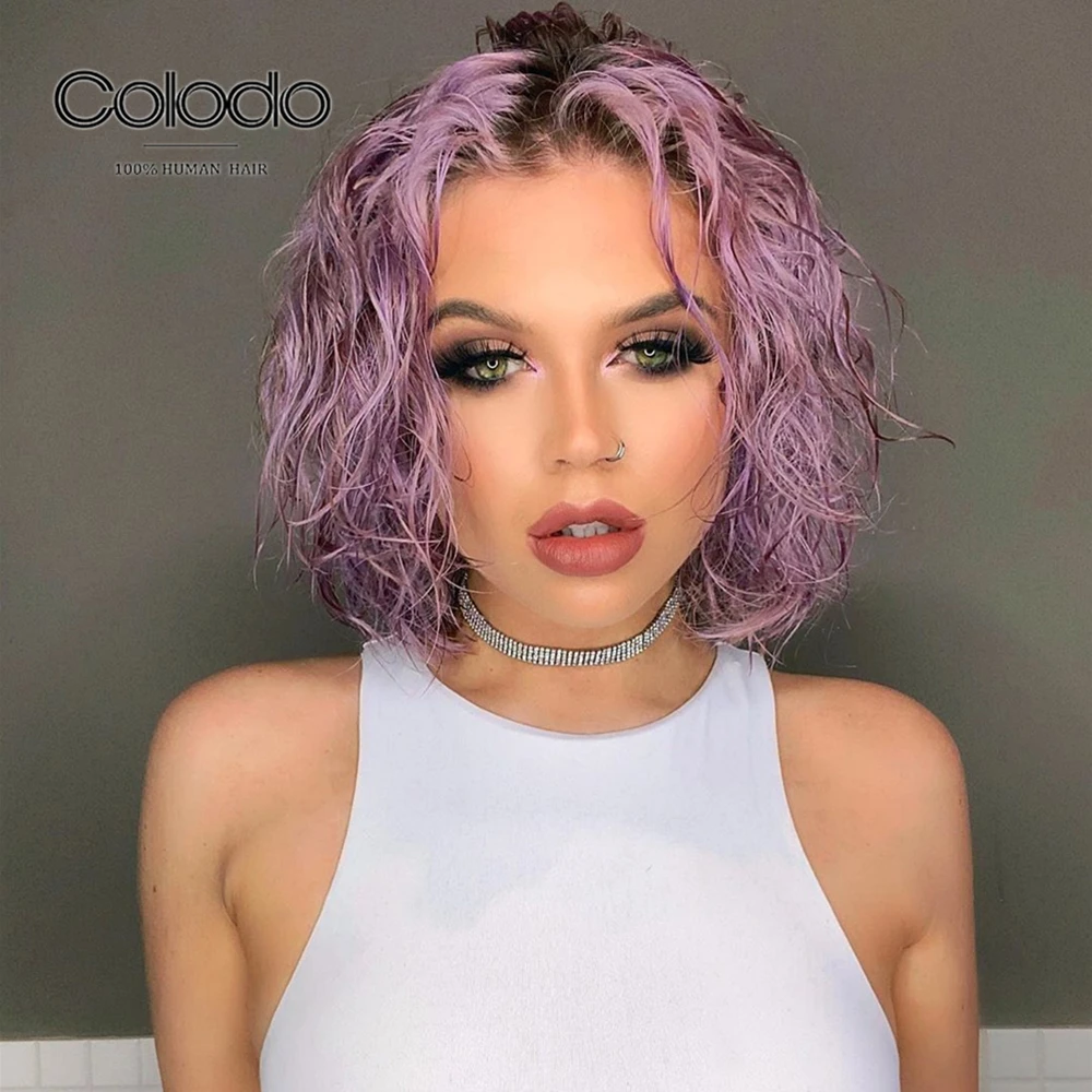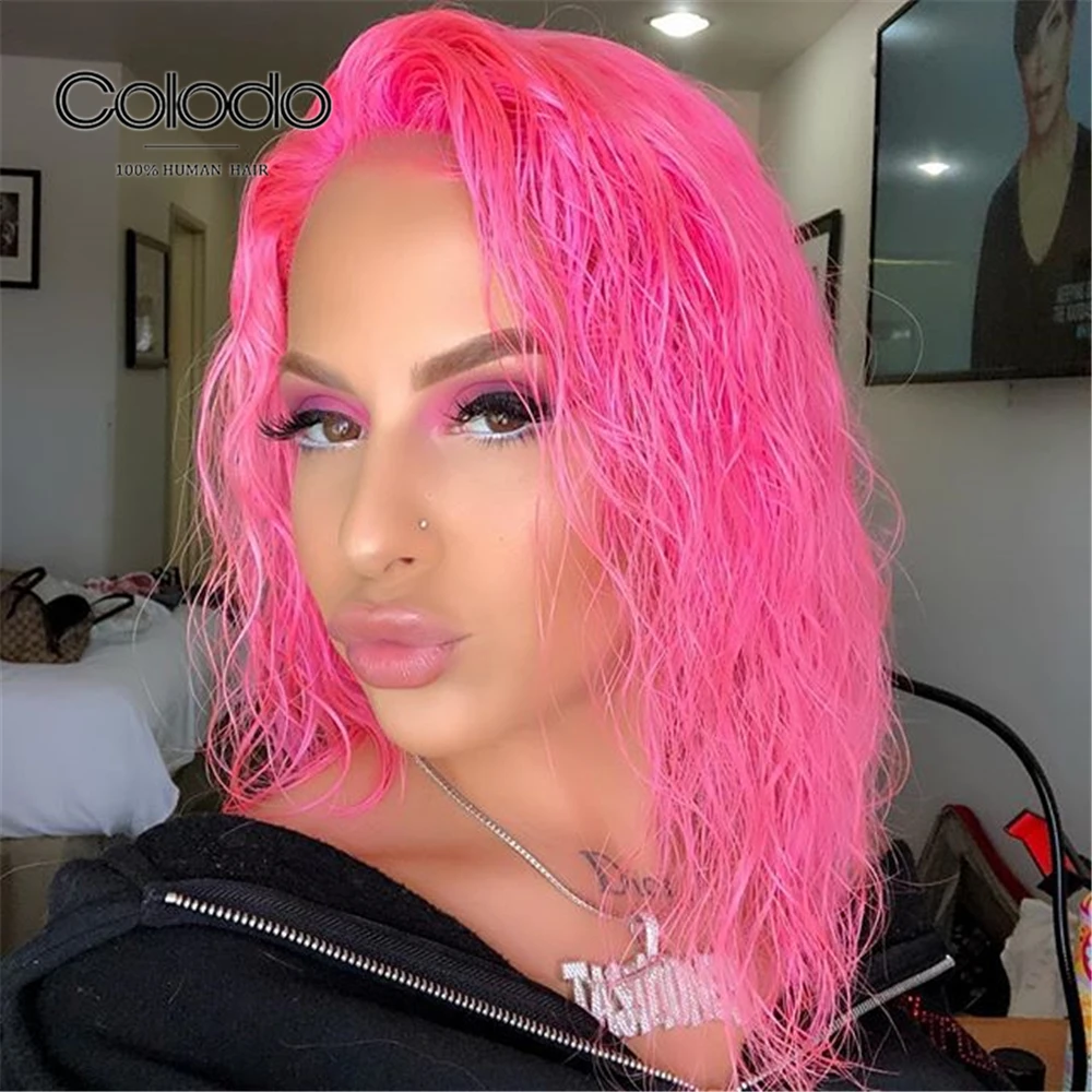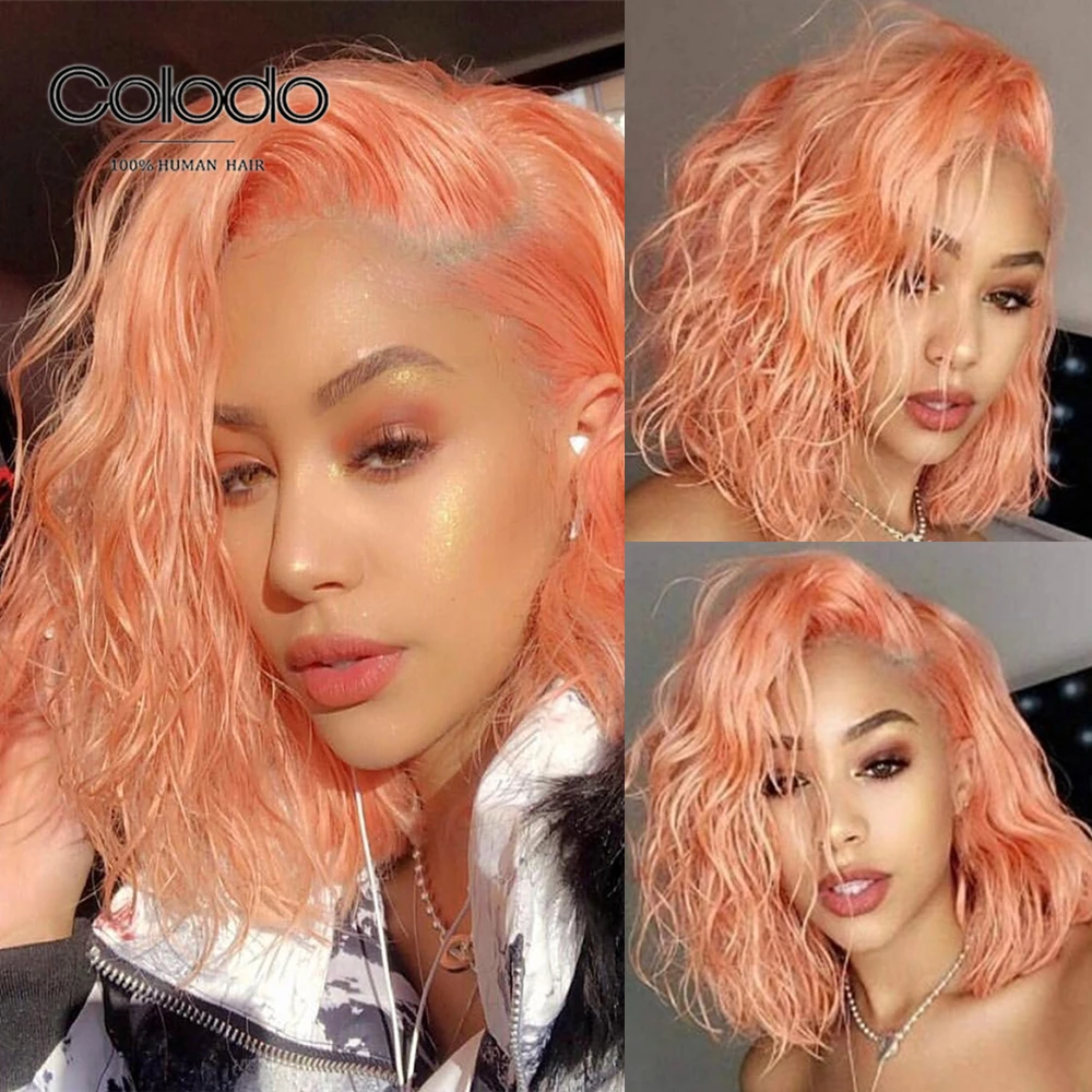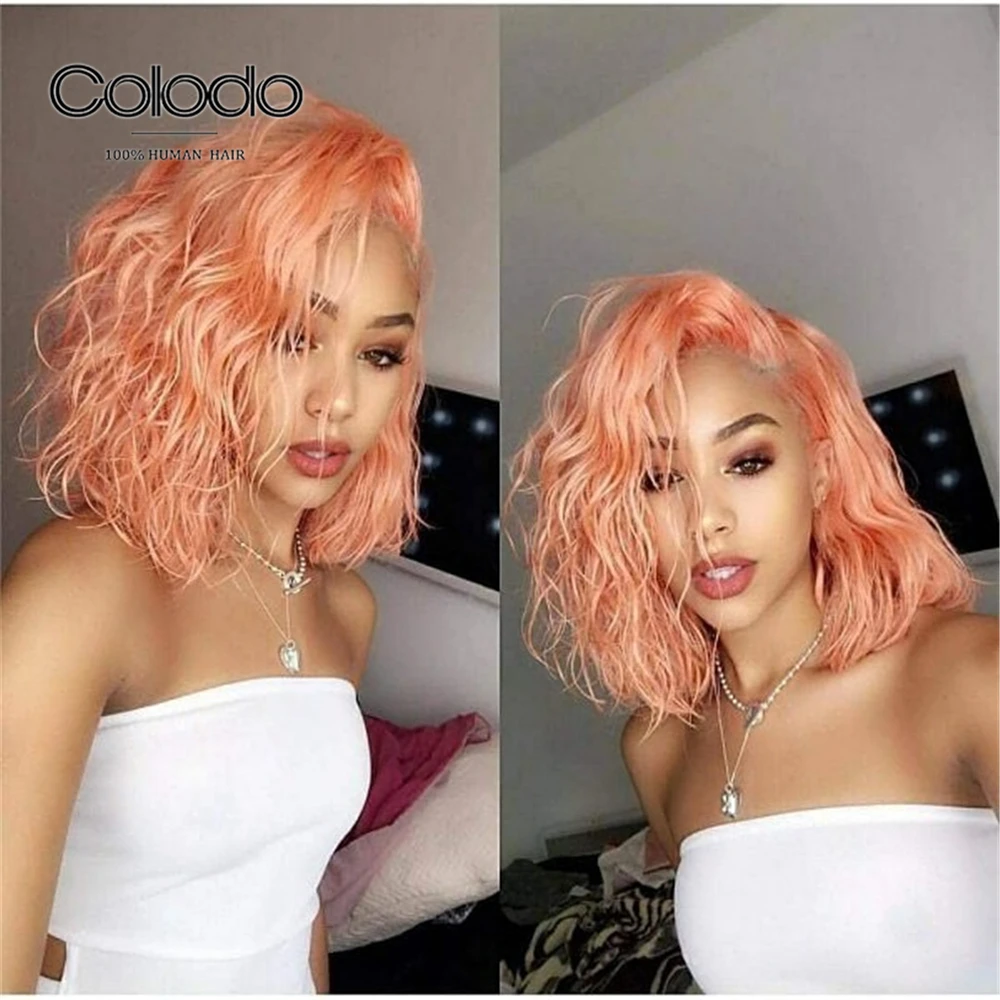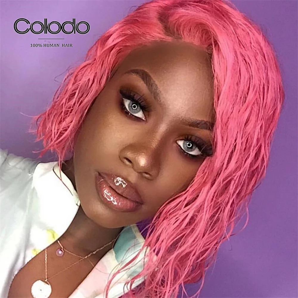 Парик в форме водной волны, с предварительно выщипанным розовым коротким Бобом
