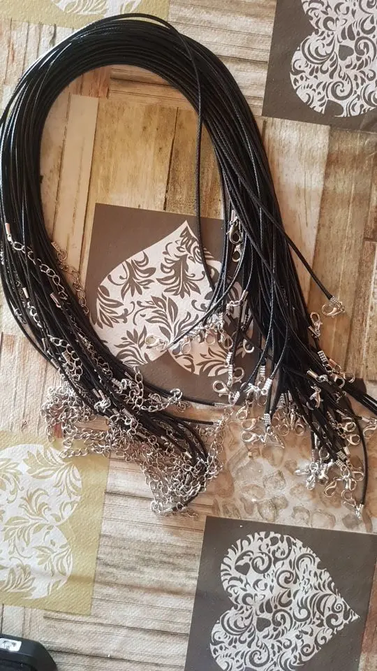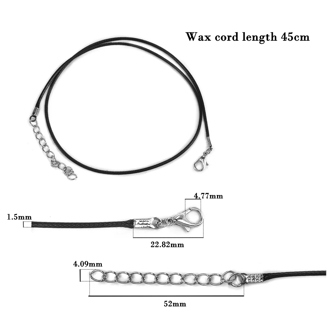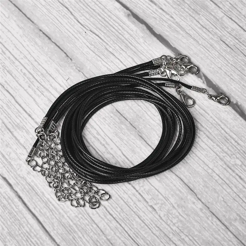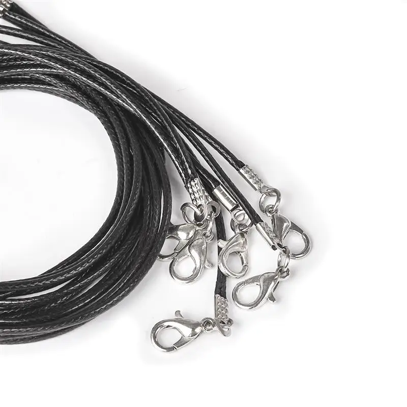 Плетеная Регулируемая черная кожаная нить, вощеный шнур для ожерелий сделай сам, застежка-карабин, цепочка для ювелирных изделий, 45 мм, 50 шт.