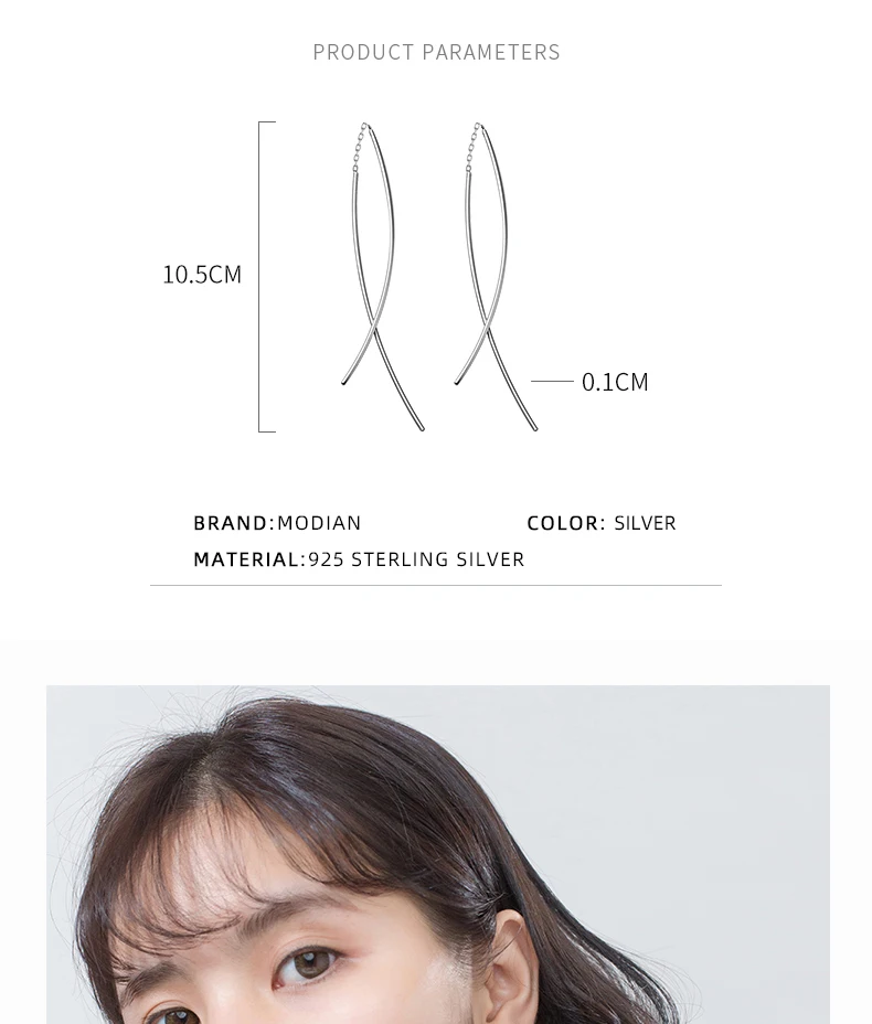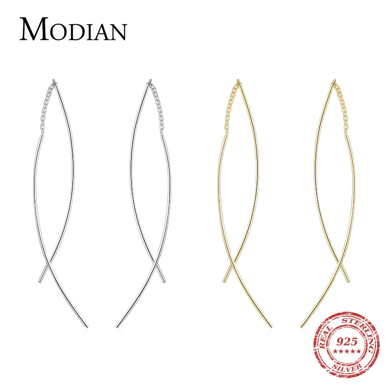 Женские серьги-подвески Modian, длинные висячие серьги из стерлингового серебра 925 пробы с геометрической линией, изящная бижутерия