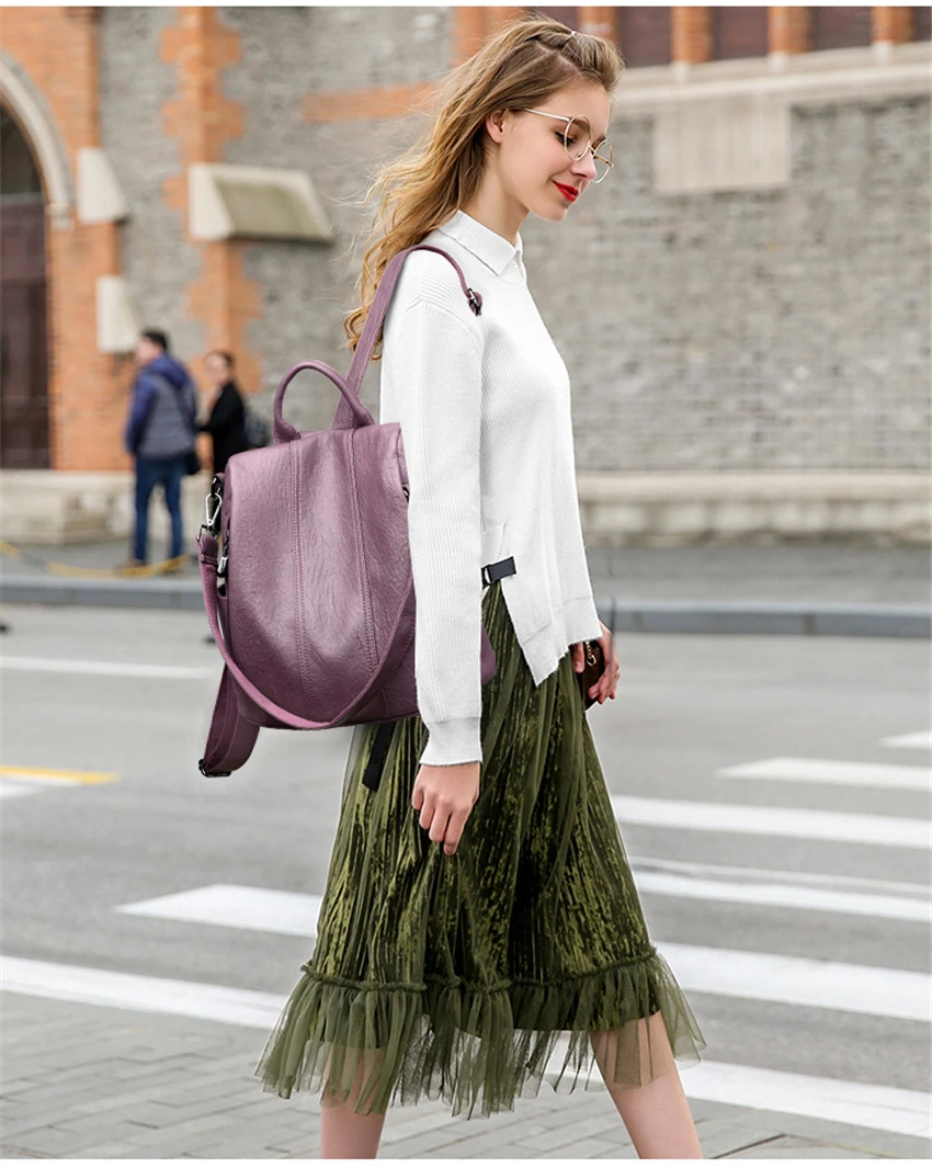 Mochilas, женские кожаные рюкзаки, винтажные, женские, анти-вор, шк...