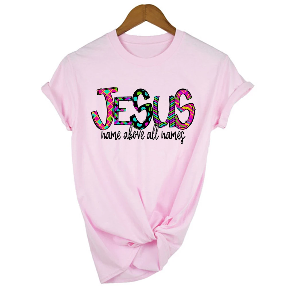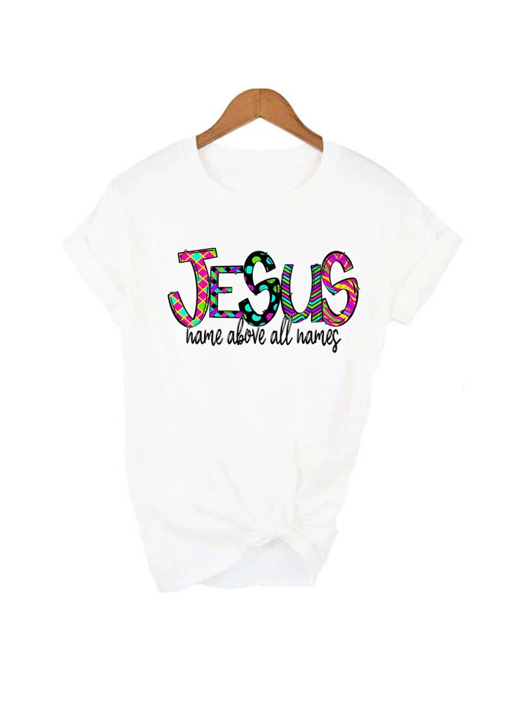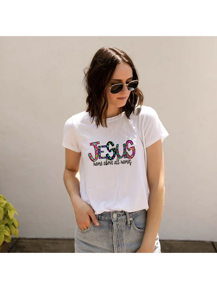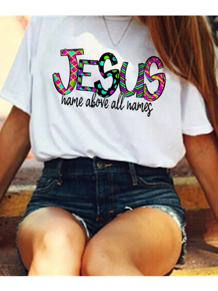 Футболка женская летняя белая с принтом и изображением имени Иисуса...