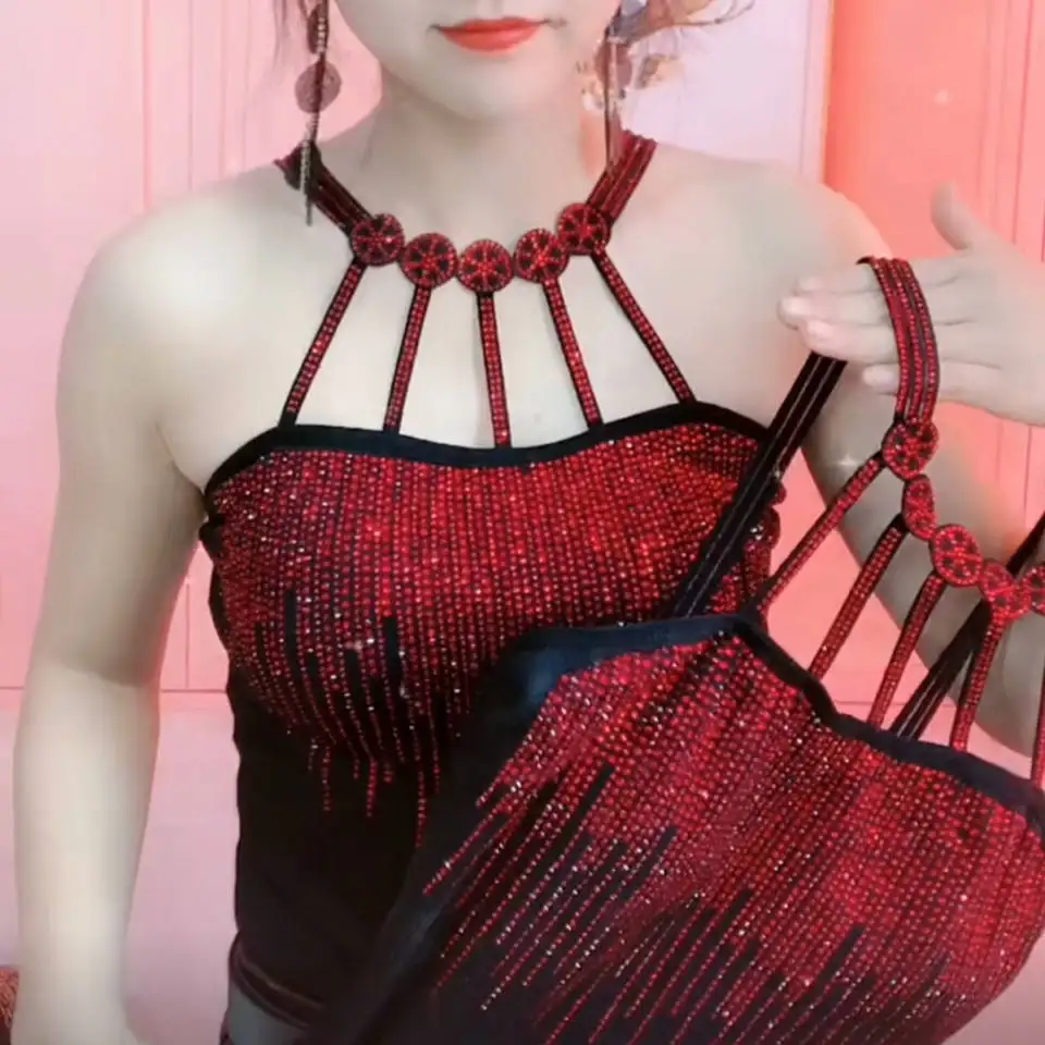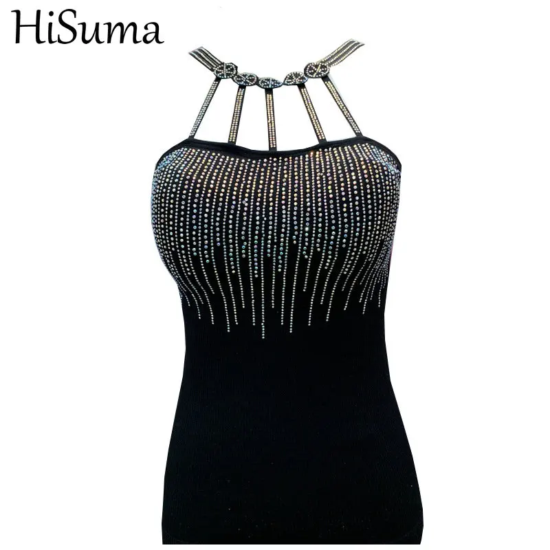 HISUMA летнее платье с лямкой на шее без бретелек для женщин, украшенные стразами, стразы с украшением в виде кристаллов, с кисточками, Базовая рубашка леди эластичный тонкий пуловер Блузка Топы