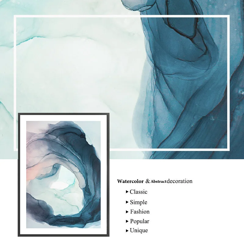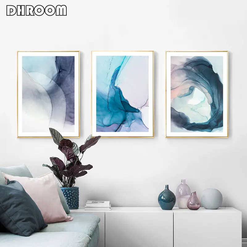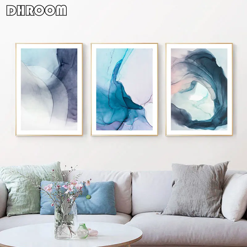 Акварельные синие чернила цветение Современная Абстрактная Картина на холсте скандинавские плакаты и принты настенные картины для гостиной домашний декор