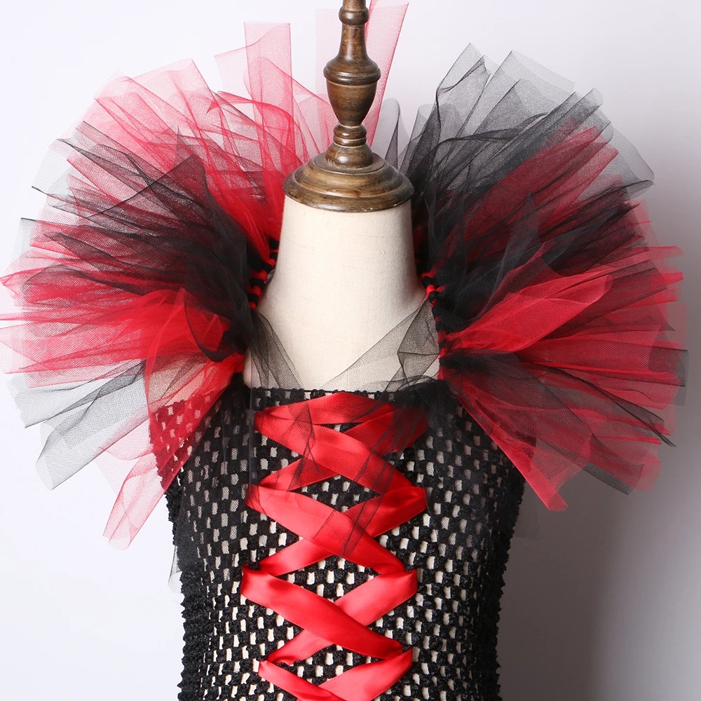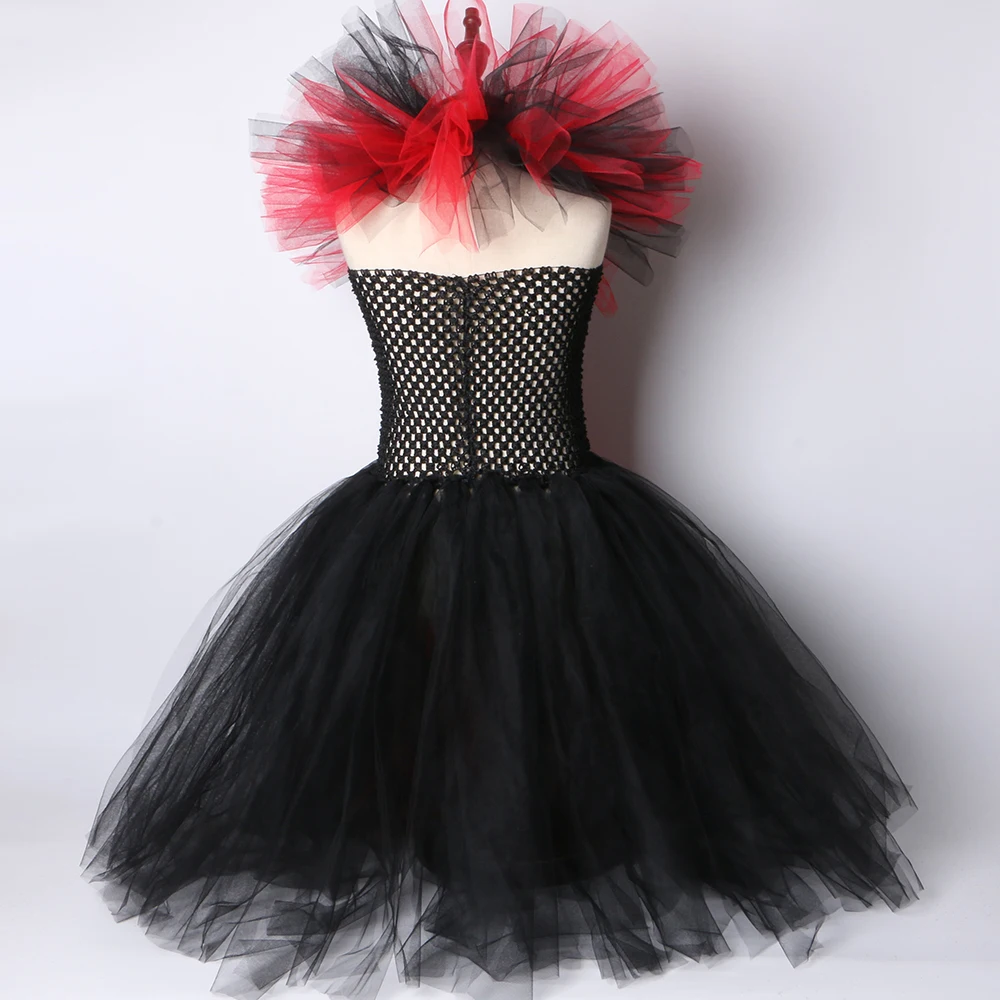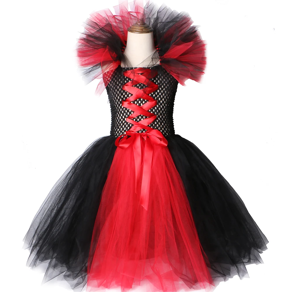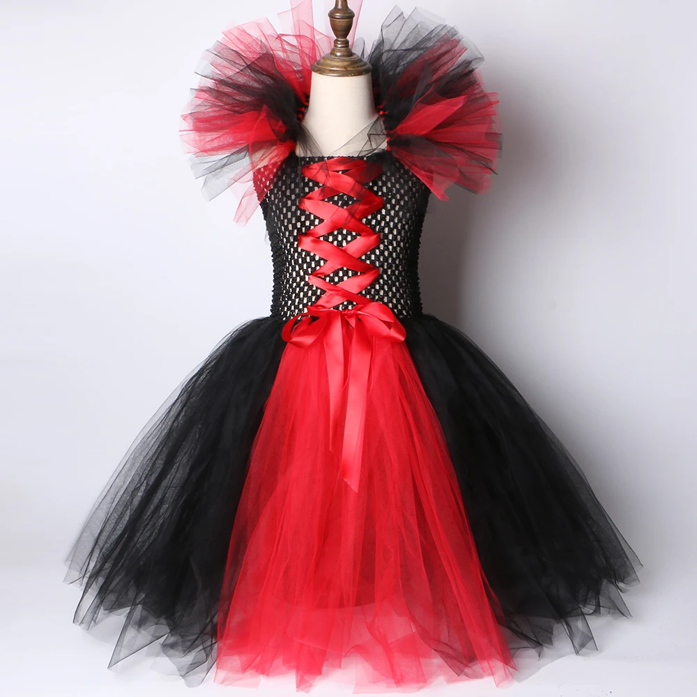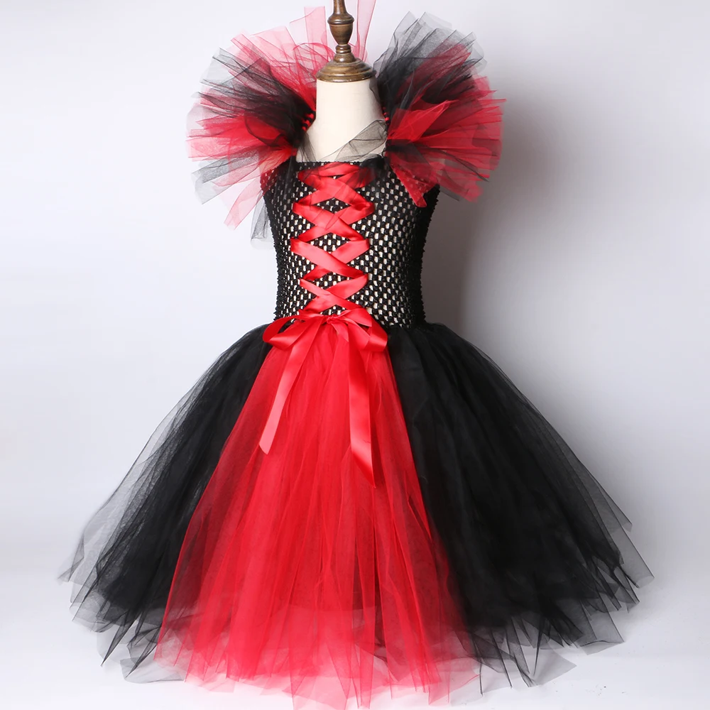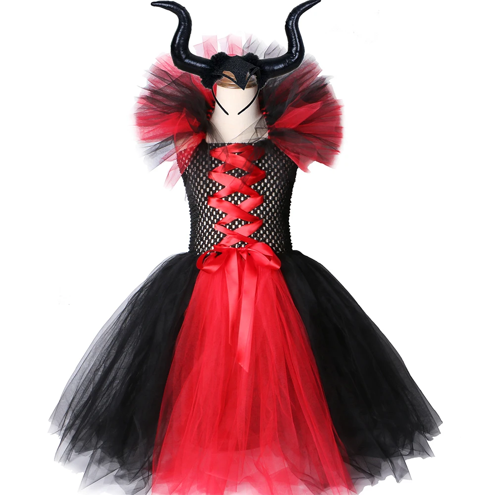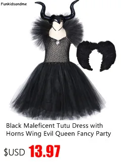 Маскарадный костюм вампира для девочек, нарядное платье-пачка на Хэллоуин, карнавал, вечевечерние детское платье ведьмы злая королева с крыльями рога для девочек 1-12 лет