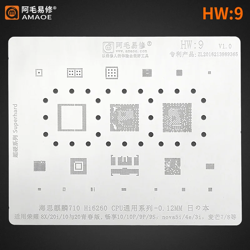 Amaoe Hisilicon Kirin посадочный жестяной шаблон для Huawei P9/P10 Lite/Mate 30 Pro/P40 стальная сетка BGA трафарет для реболлинга