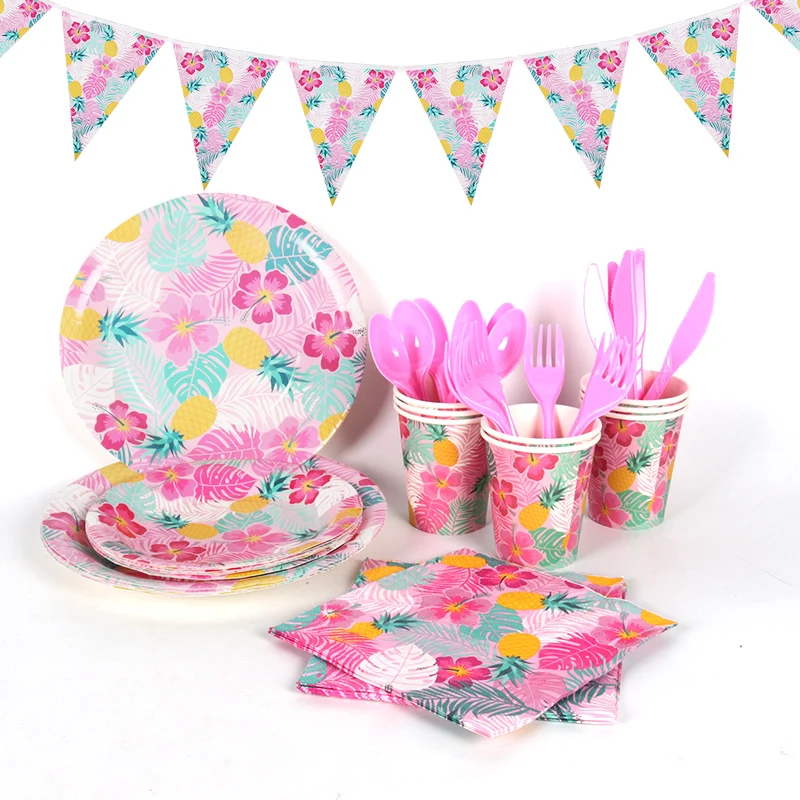 Луо Фламинго вечерние посуда набор бумажный Баннер Пластины чашки с...