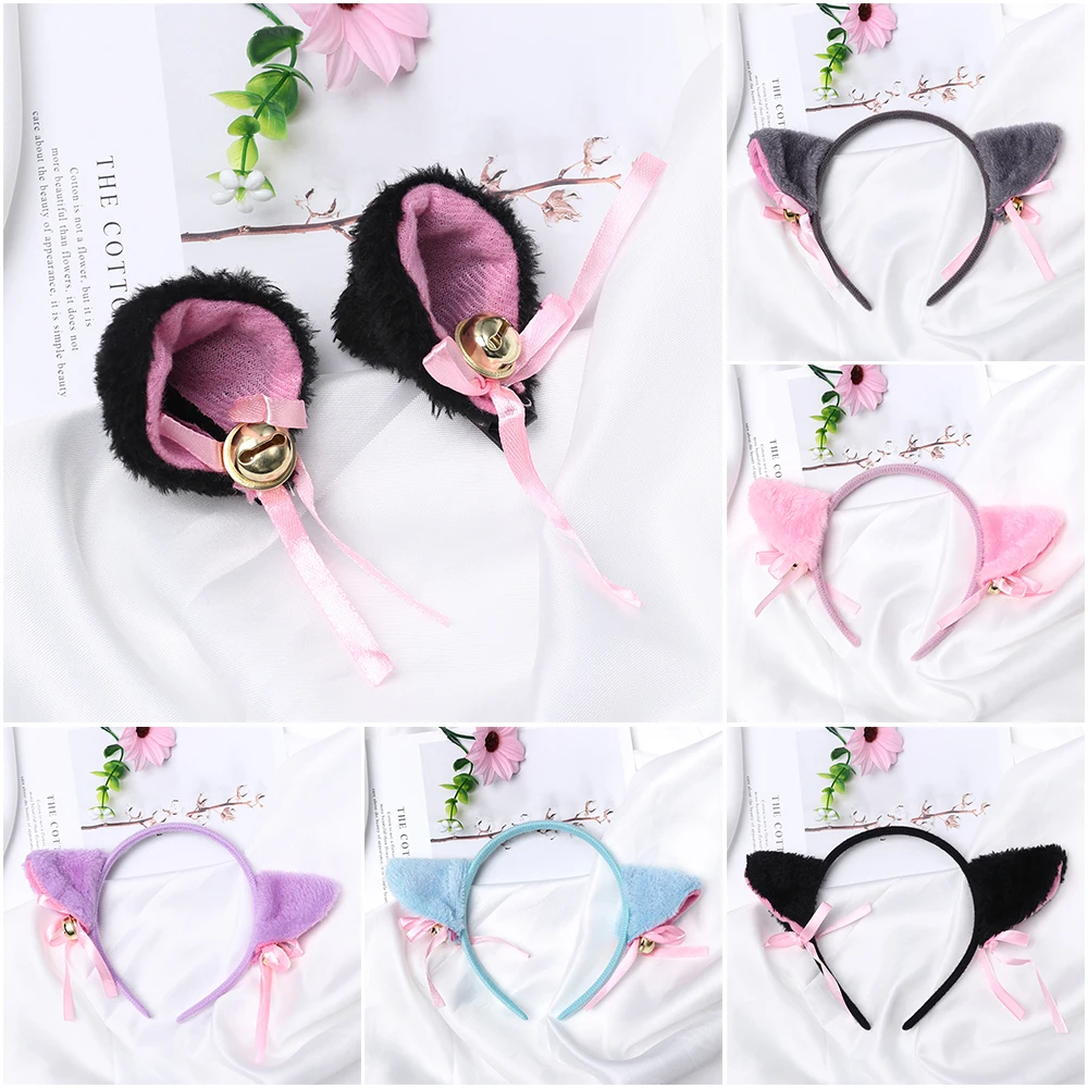 Заколка для волос с кошачьими ушками и колокольчиком, 6 цветов