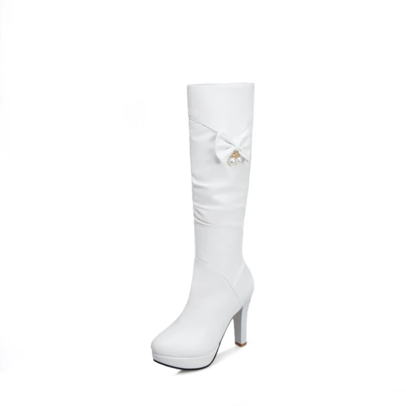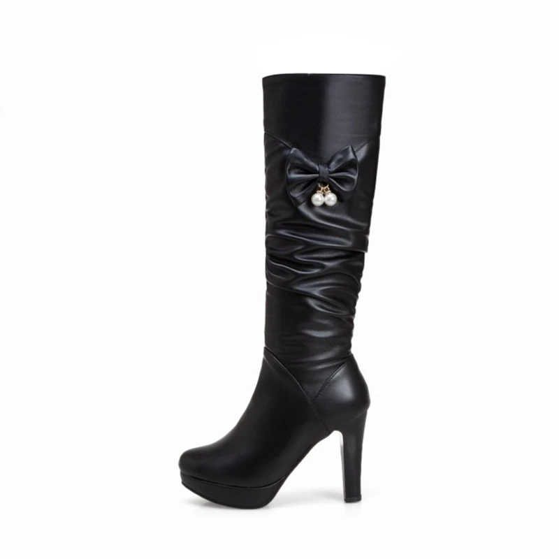Сапоги на платформе 2020 г. Женские сапоги до колена женские кожаные удобные осенне-зимние высокие сапоги на высоком каблуке, большие size32-43 A50-16