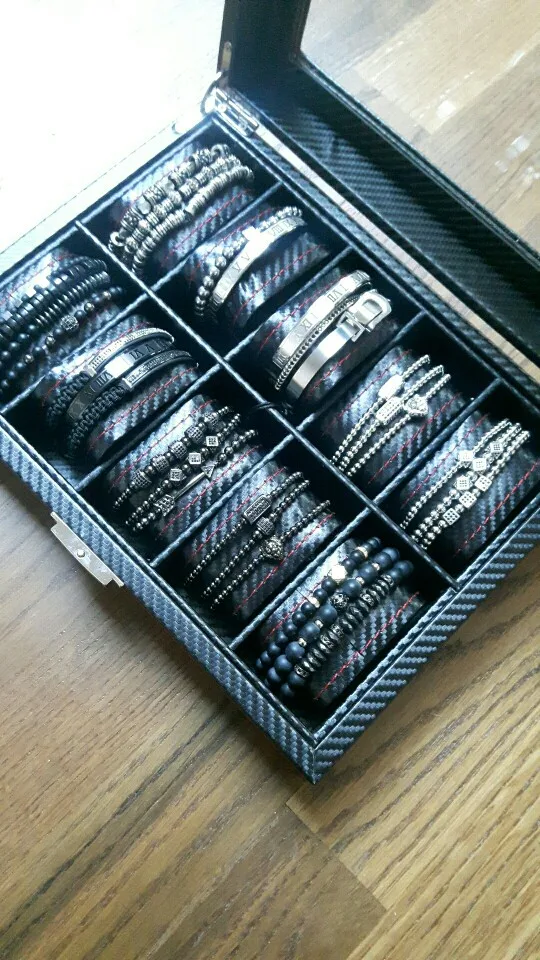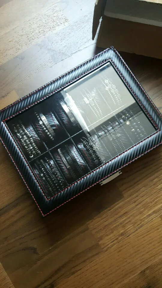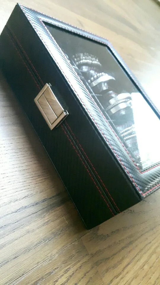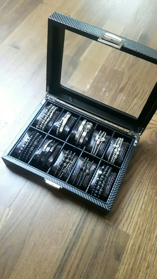 10 сеток из углеродного волокна, коробка для часов, держатель для часов, органайзер, чехол для хранения ювелирных изделий, дисплей, прямоугольник, черный цвет, витрина, подарки
