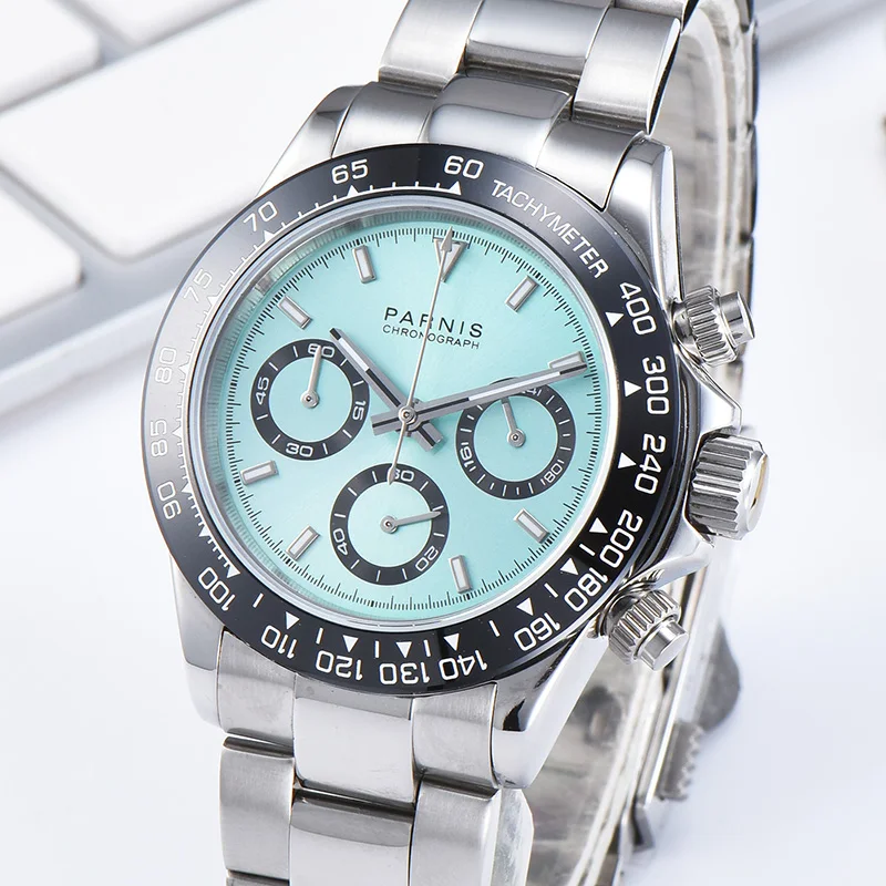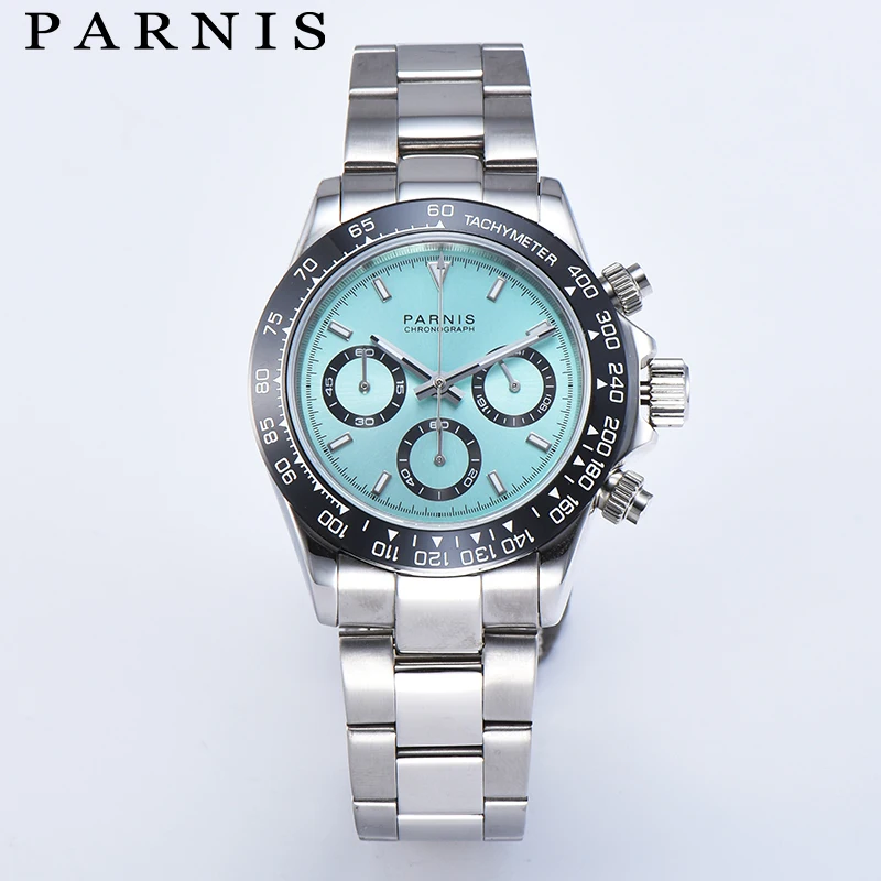 Часы Parnis мужские Кварцевые водонепроницаемые, с сапфировым стеклом и хронографом, 39 мм