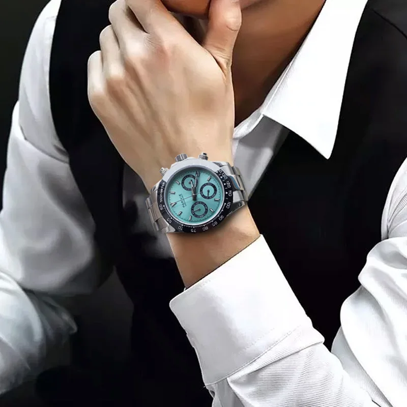 Мужские водонепроницаемые кварцевые часы с хронографом и сапфировым...