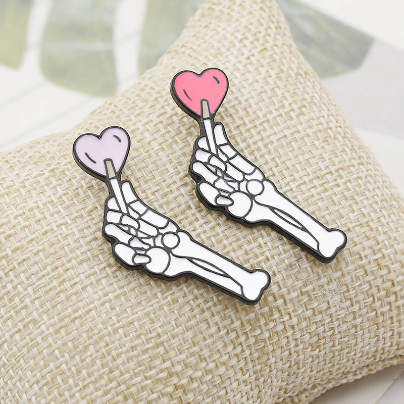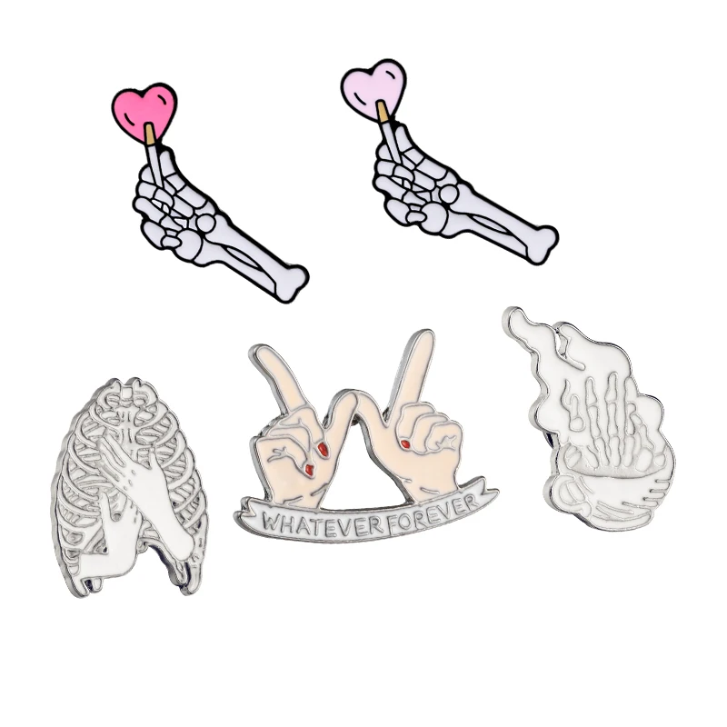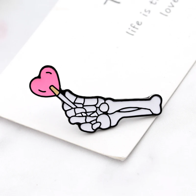 Значок с героями мультфильмов для женщин, эмалевые заколки в рубчик для броши с сердечком рук, скелетов, жестов, сумок, пиджаков, лацканов, Ювелирное Украшение в стиле панк