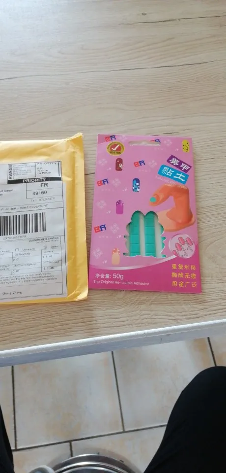 очень понравилась. пришла посылка очень быстро. первая от заказа 11.11 даже не ожидала. приклеивает не плохо. насколько многоразово не могу сказать первый подобный пластилин для типс.