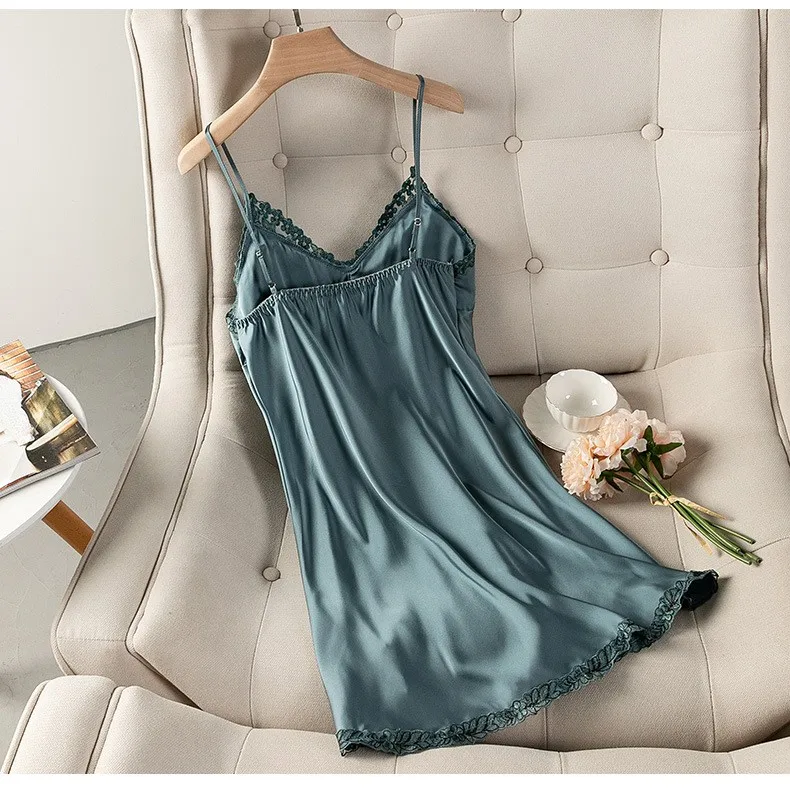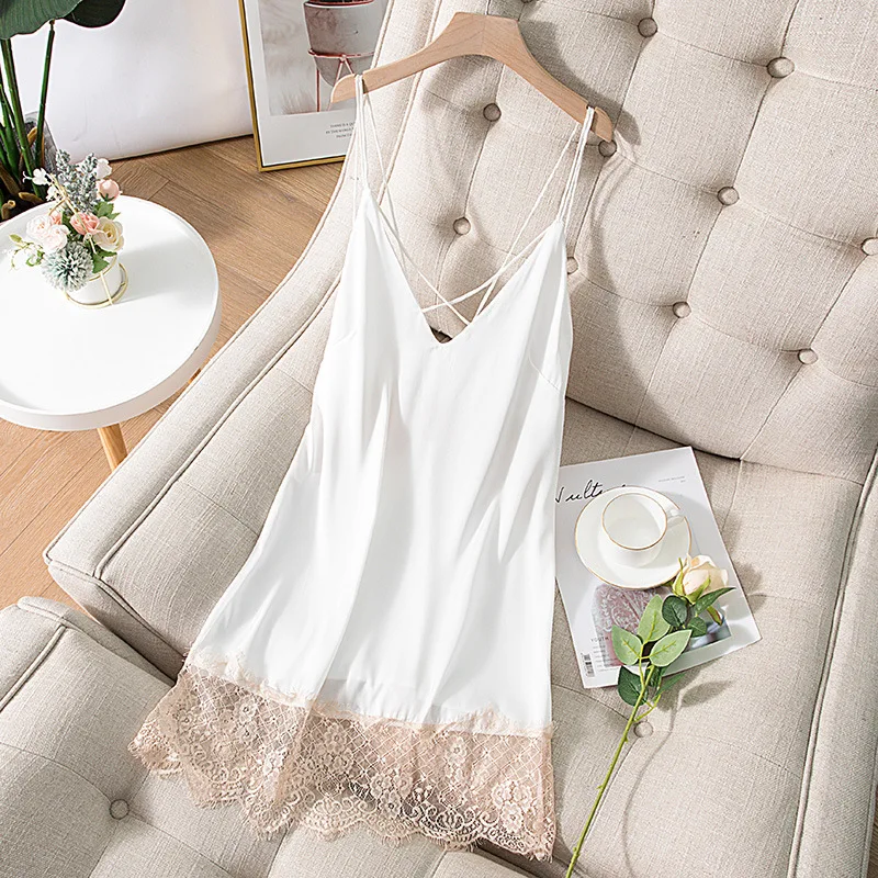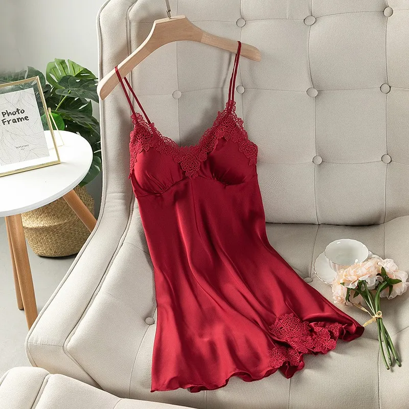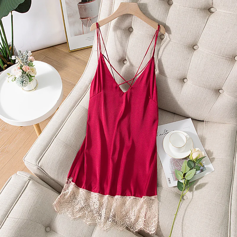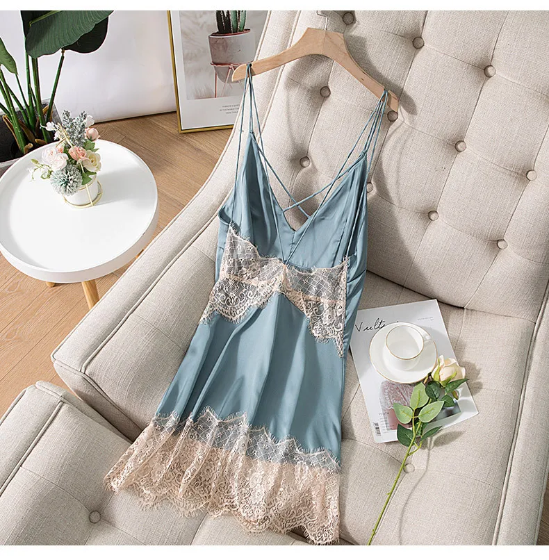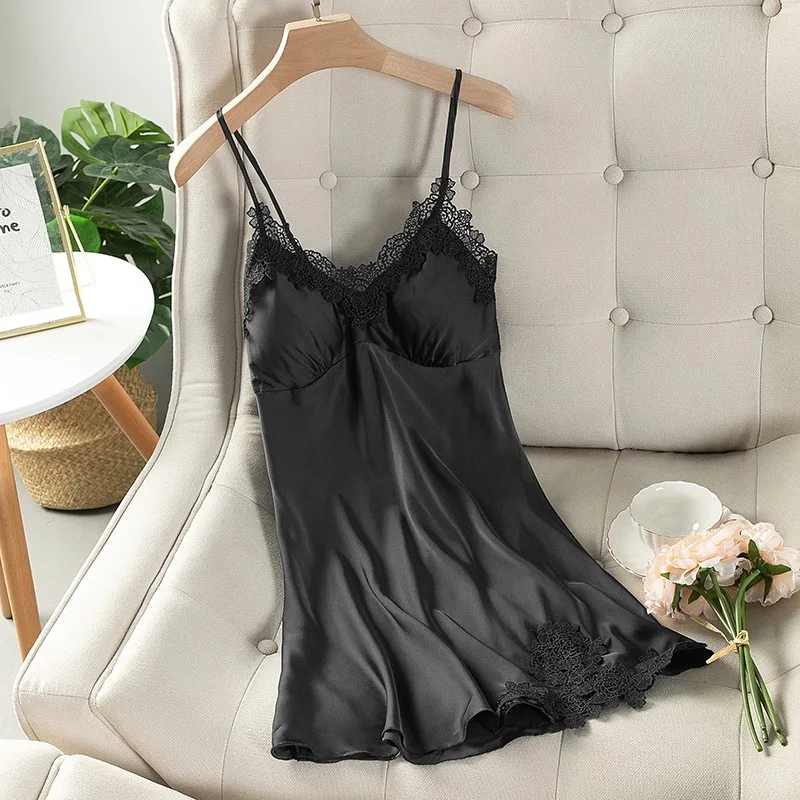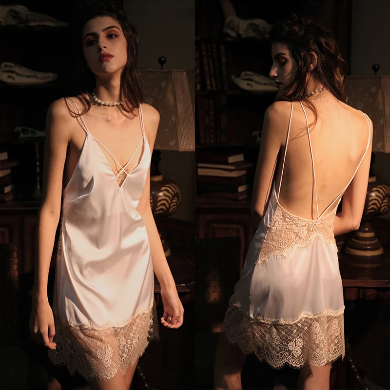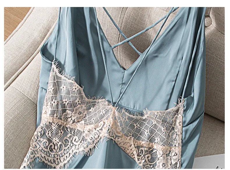 Ночная рубашка женская, атласная, кружевная, на тонких бретелях
