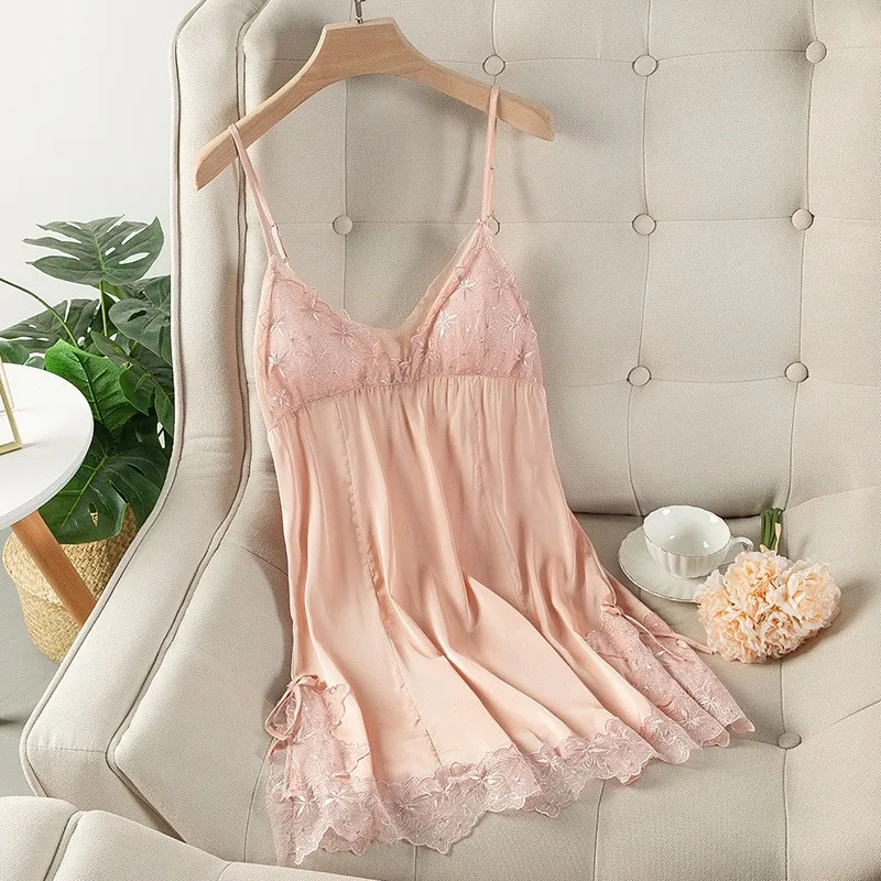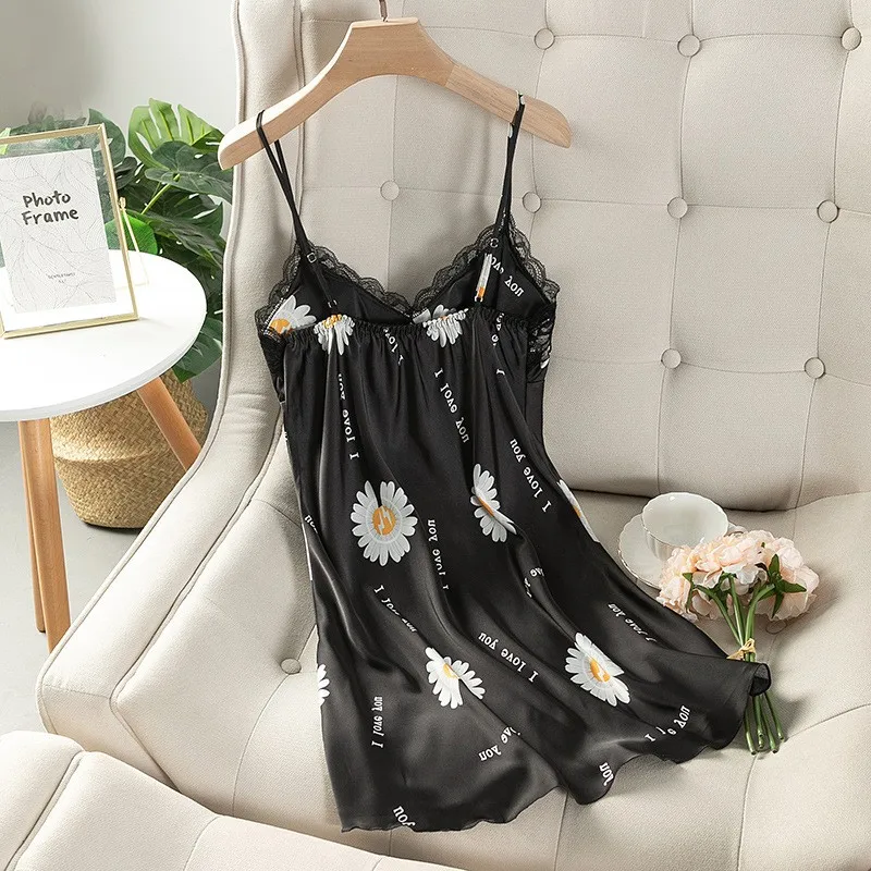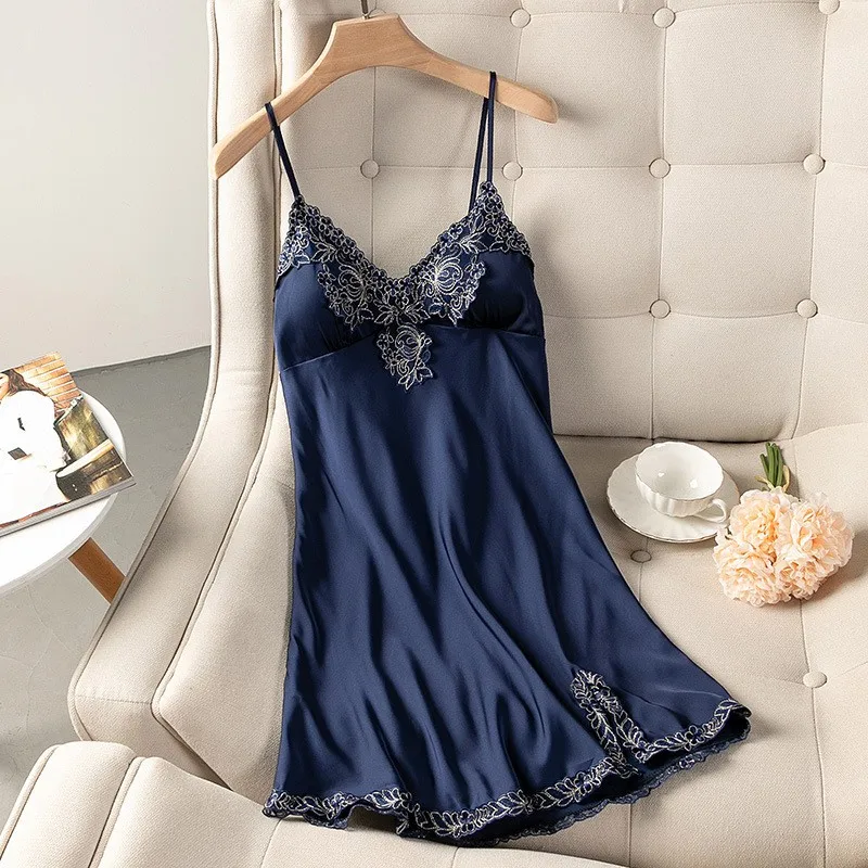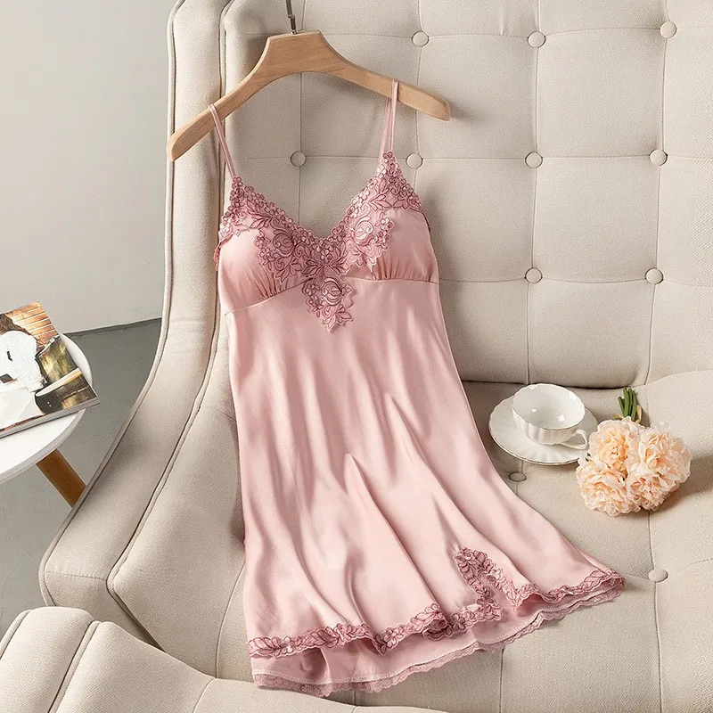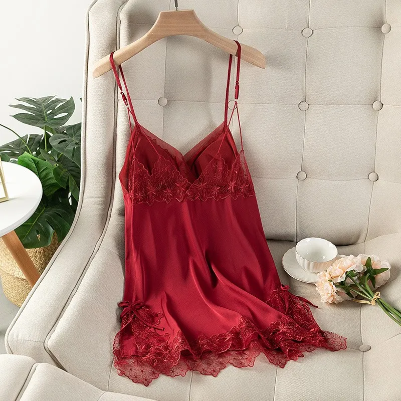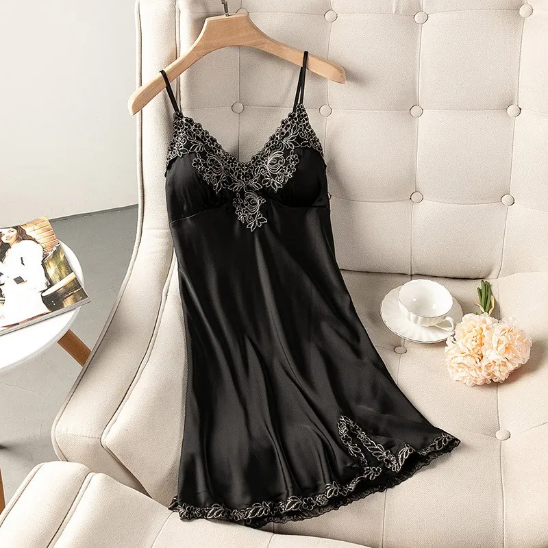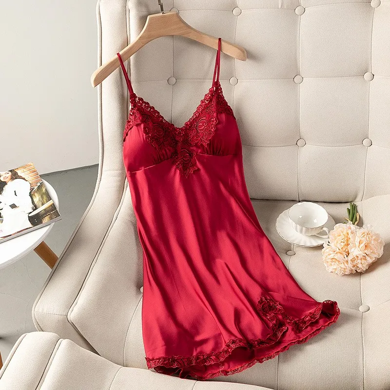 Ночная рубашка женская, атласная, кружевная, на тонких бретелях