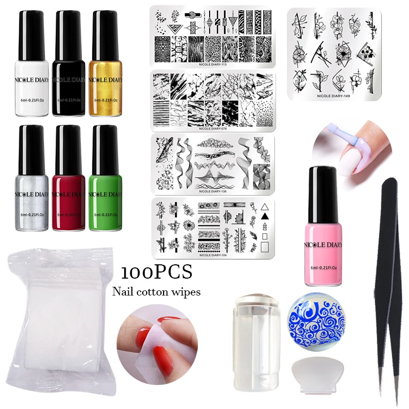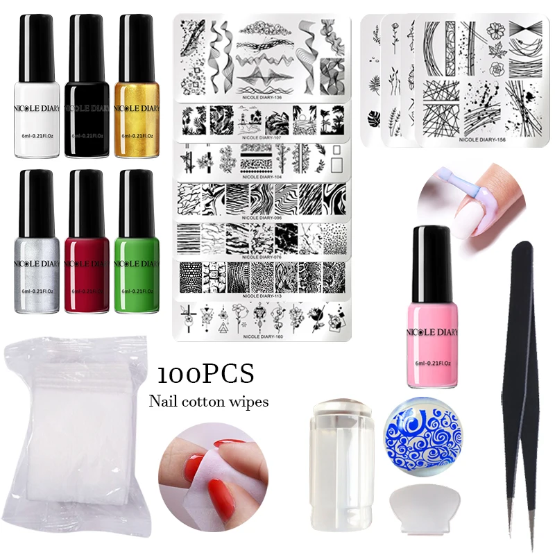 Набор пластин для стемпинга NICOLE DIARY, 11 шт., набор для снятия жидкости с жидкостью, хлопковый пинцет для ногтей
