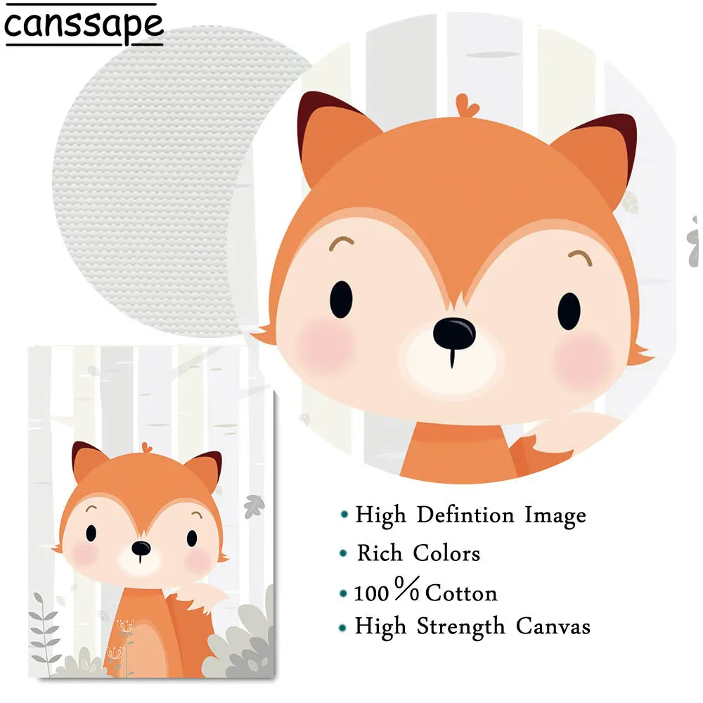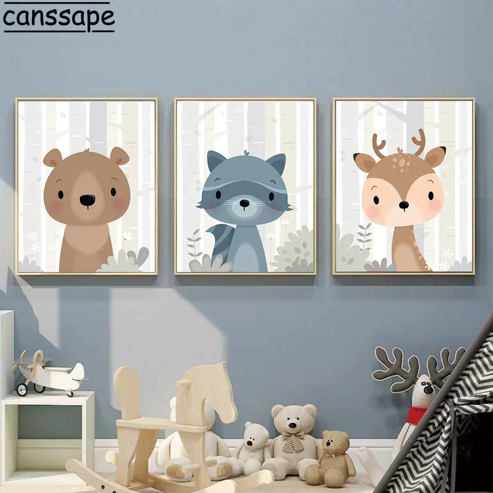 Настенные постеры с рисунком лесных животных, кроликов, медведей, живопись на холсте, олень, лиса, настенные картины в скандинавском стиле, декор детской комнаты