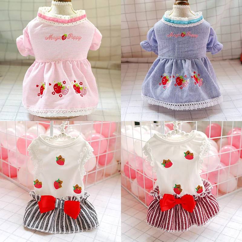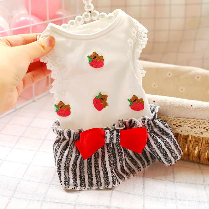 Летнее милое платье для собаки, юбка в полоску с клубничкой, для маленьких собак, одежда для чихуахуа, пуделя, одежда для щенков, кошек, костюм для питомца