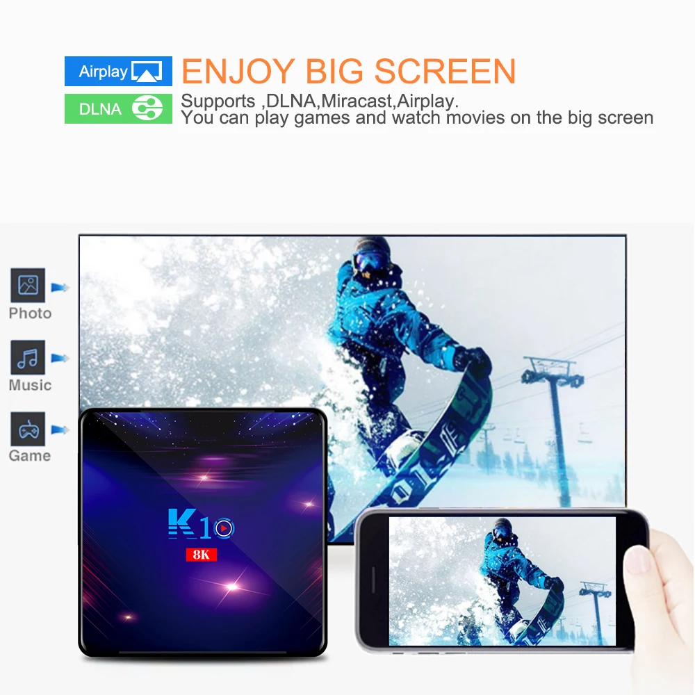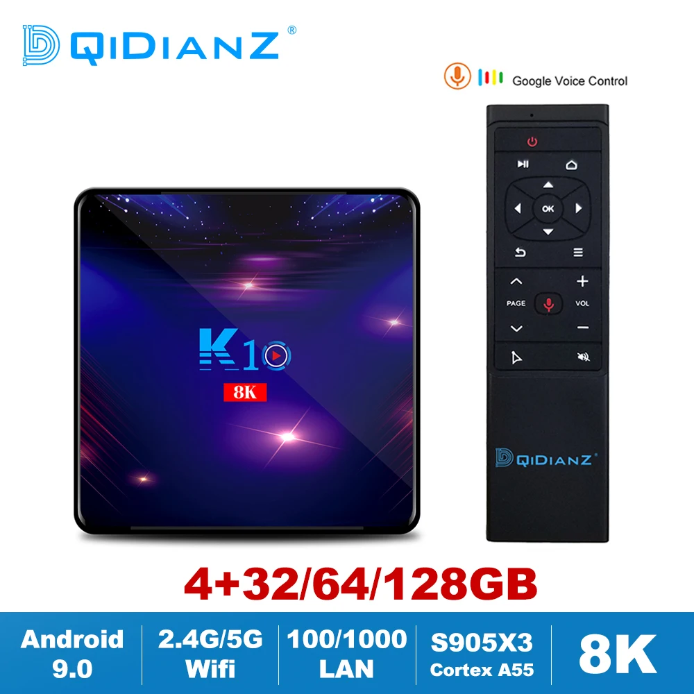 ТВ-приставка K10 Android 9.0 S905X3 Android 9.0 9,0G5 ГГц Wifi 8K HDR BT 2,4 LAN 4,1 M Смарт медиаплеер HDMI 2.1 ТВ-приставка 4 Гб
