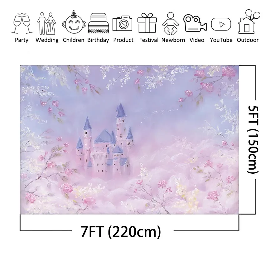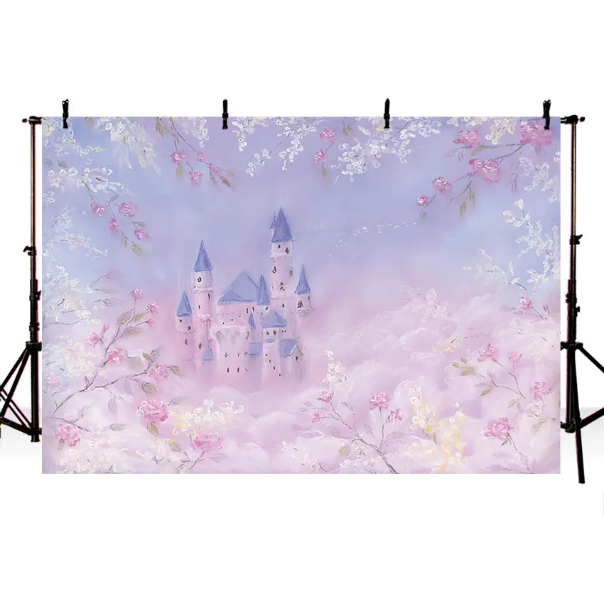 Фон для фотосъемки новорожденных с изображением замка для маленьких принцесс с изображением портретов и цветов для фотостудии